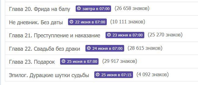 Обратите внимание, там 25 июня сначала последняя глава, а потом сразу в тот же день эпилог (потому что он коротенький и я не вижу смысла выкладывать его отдельно).