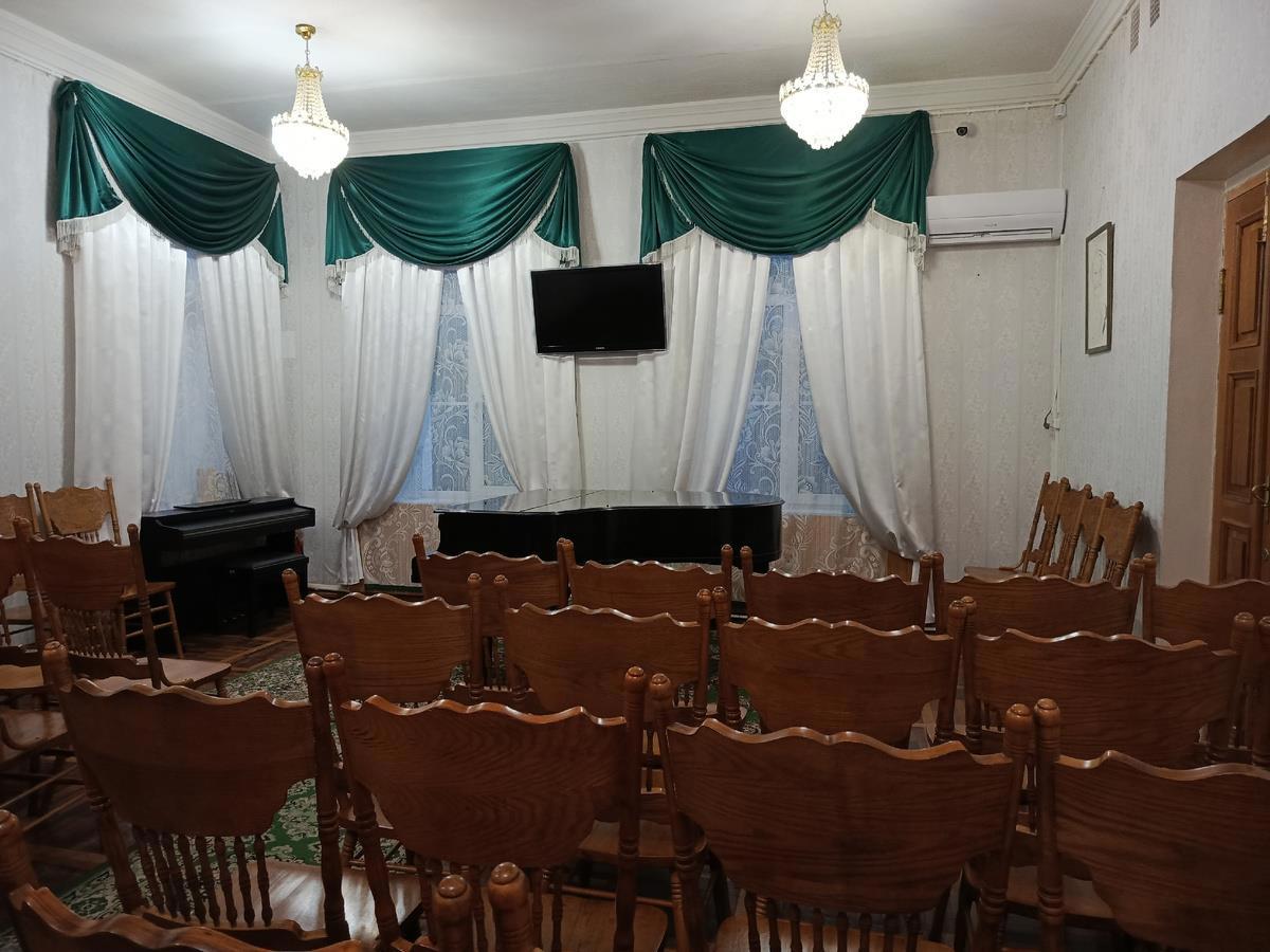 На первом этаже было еще две гостевых комнаты, а теперь там концертный зал,украшенный портретами великих композиторов. Выполнены они в очень необычной манере.