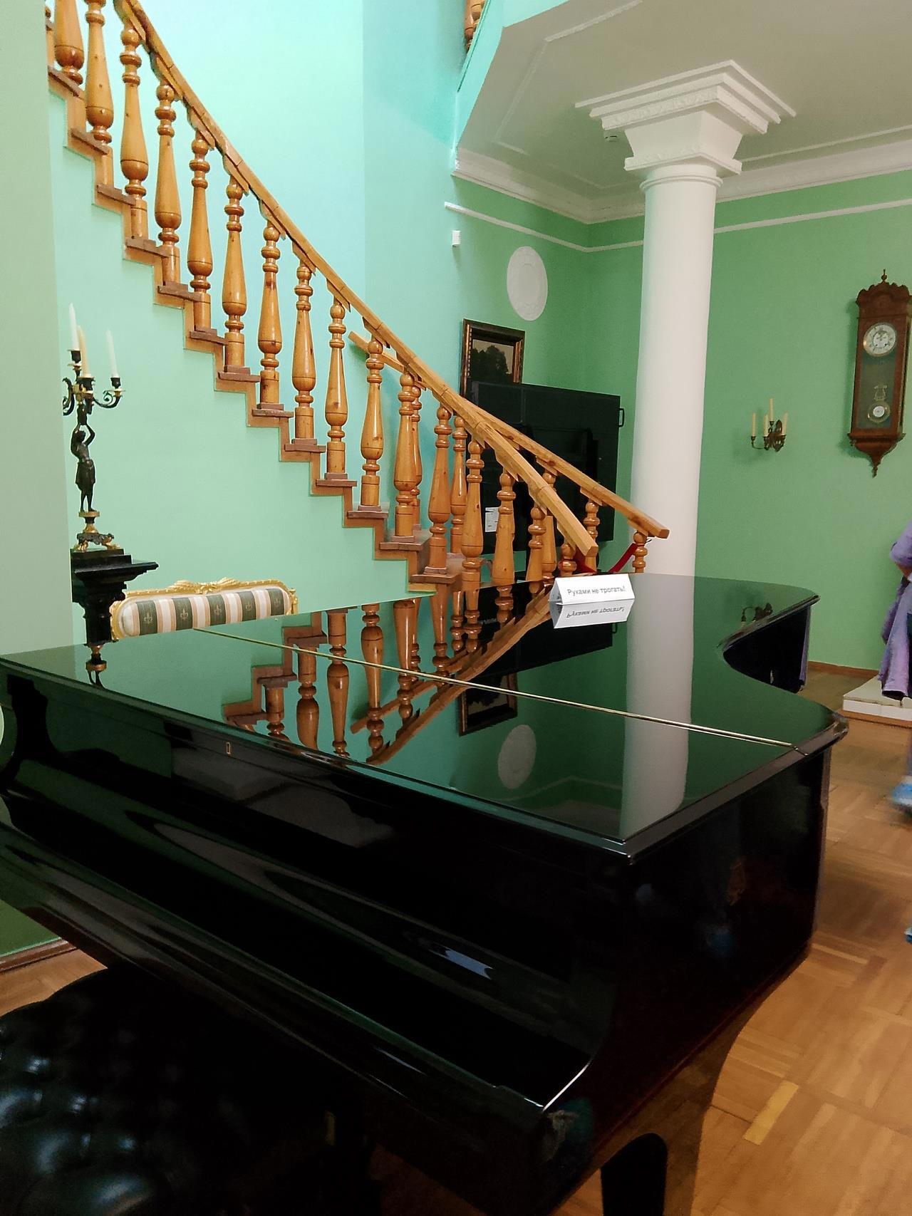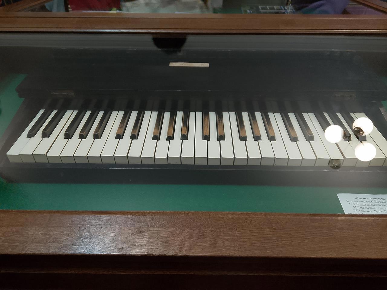На втором этаже в бывшей классной комнате находится фотовыставка, посвященная жизни и творчеству Рахманинова. И знаменитая "немая" клавиатура. Своего рода тренажер для пианиста, если нет возможности играть на настоящем инструменте.