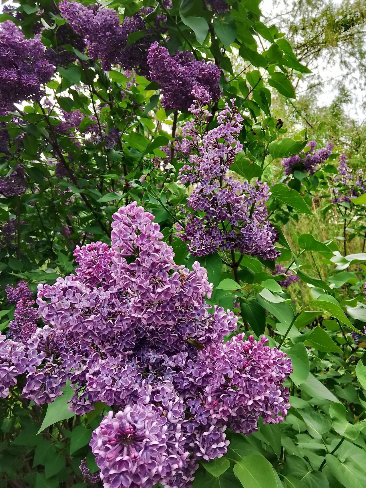 Словом, совсем, как в повести Юрия Нагибина "Сирень", которую я все время вспоминала там: "И сирень зацвела вся разом, в одну ночь вскипела и во дворе, и в аллеях, и в парке. А ведь положено так: сперва запенивается белая, голубая и розовая отечественная сирень, ее рослые кусты теснятся меж отдельным флигелем и конюшнями, образуют опушку Старого парка, через пять-шесть дней залиловеет низенькая персидская сирень с приторно-душистыми свешивающимися соцветиями, образующая живую изгородь меж двором и фруктовым садом; а через неделю забросит в окна господского дома отягощенные кистями ветви венгерская сирень с самыми красивыми блекло-фиолетовыми цветами. А тут сирени распустились разом, после сильной ночной грозы, переполошившей обитателей усадьбы прямыми, отвесными, опасными молниями. И даже куст никогда не цветшей махровой сирени возле павильона зажег маленький багряный факел одной-единственной кисти..."