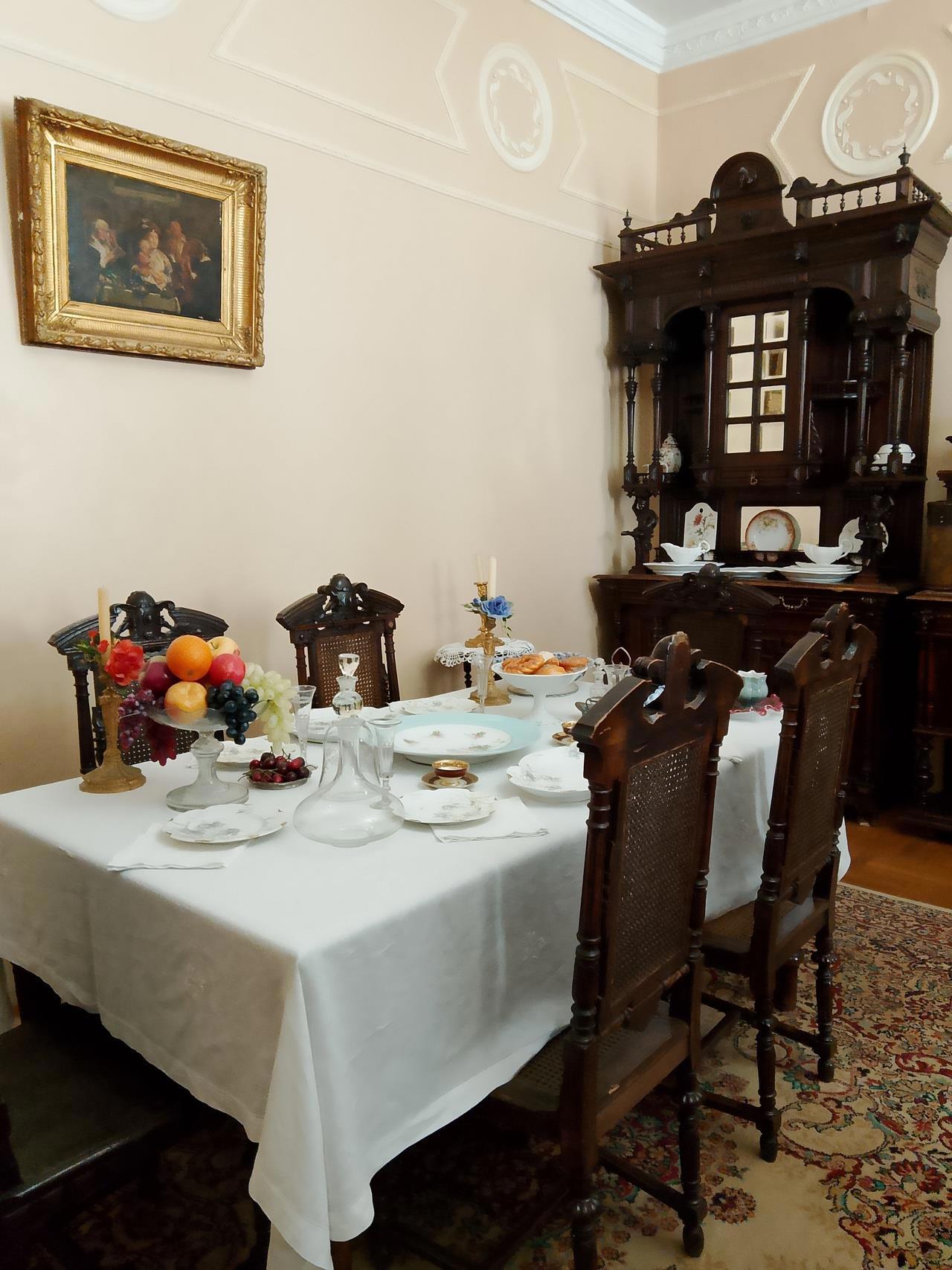 Первый этаж - гостиная, столовая, библиотека, кабинет А.А.Сатина (будущего тестя С.Рахманинова) и комната В.А.Сатиной- тёти и будущей тёщи музыканта.