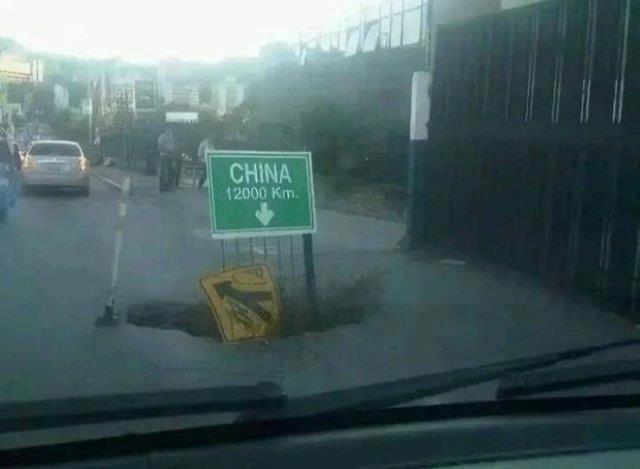China 12000 km = дорожный указатель «До Китая 12000 км»