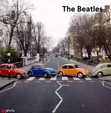 Beatles (битлы) созвучны Beetles (жукам). Ну а Эбби-роуд без изменений.
