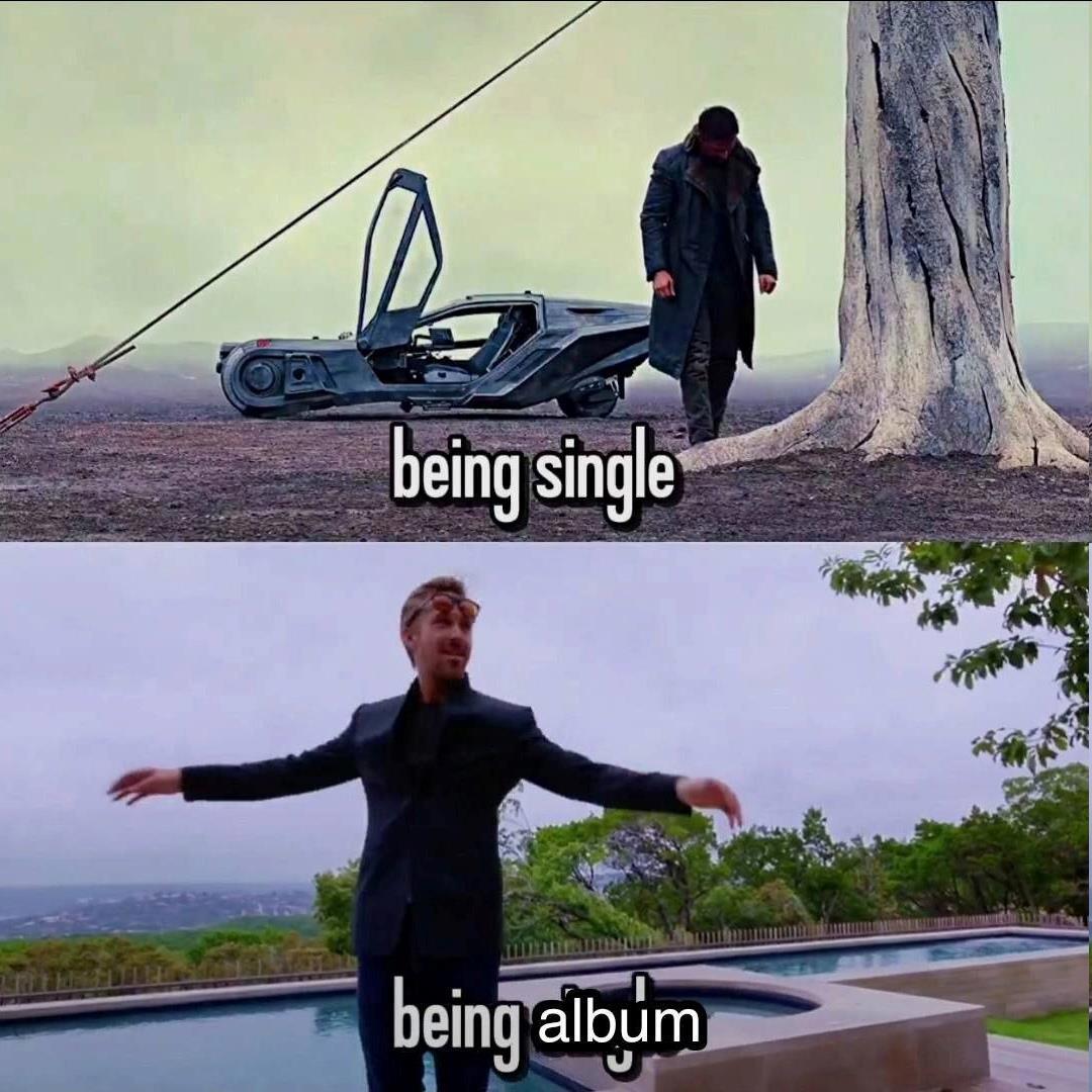 Being single = быть одиноким. При этом в музыке single = сингл, album = альбом.