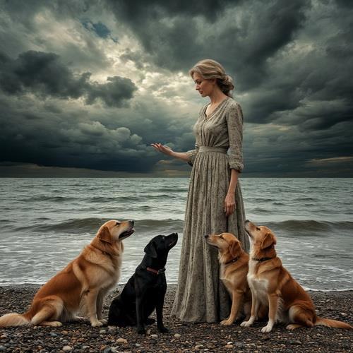 Вспомнила давнее стихотворение, а Шедеврум нарисовал картинку. Зверей заменила на собак, а то очень смешные рисунки получались. Среди зверей были зайцы, кенгуру и ещё неведомо кто.