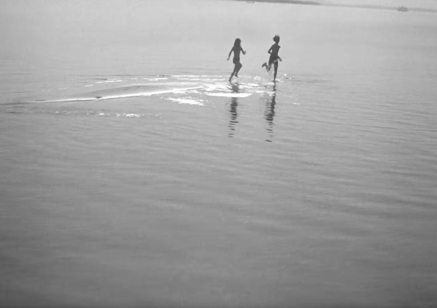 И счастливый сон – это когда Иван сначала играет с детьми на том же пляже, что и в предыдущем сне, а потом бежит со своей сестрой по пляжу и радуется жизни и мирному небу над головой.