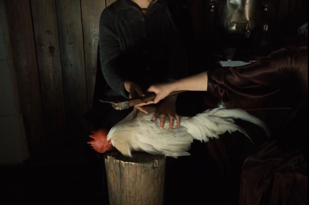 3А. Сон предваряется сценой в которой мать скитается со своими детьми и заходит в дом своих родственников, где беременная хозяйка убеждает ее отрубить голову петуху.