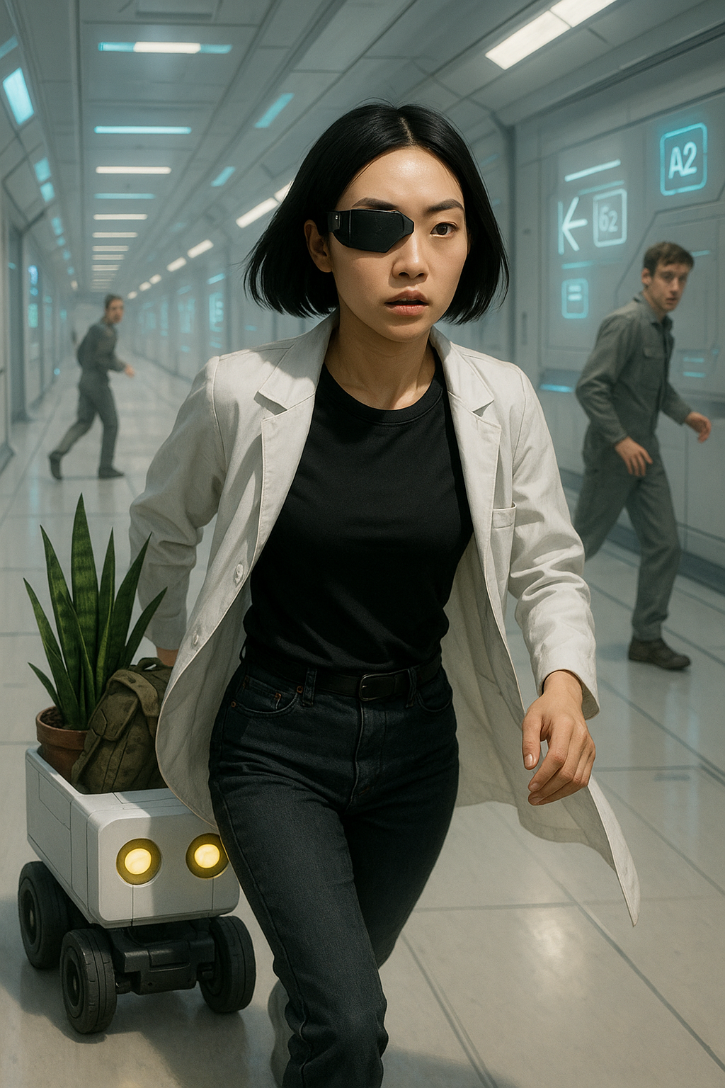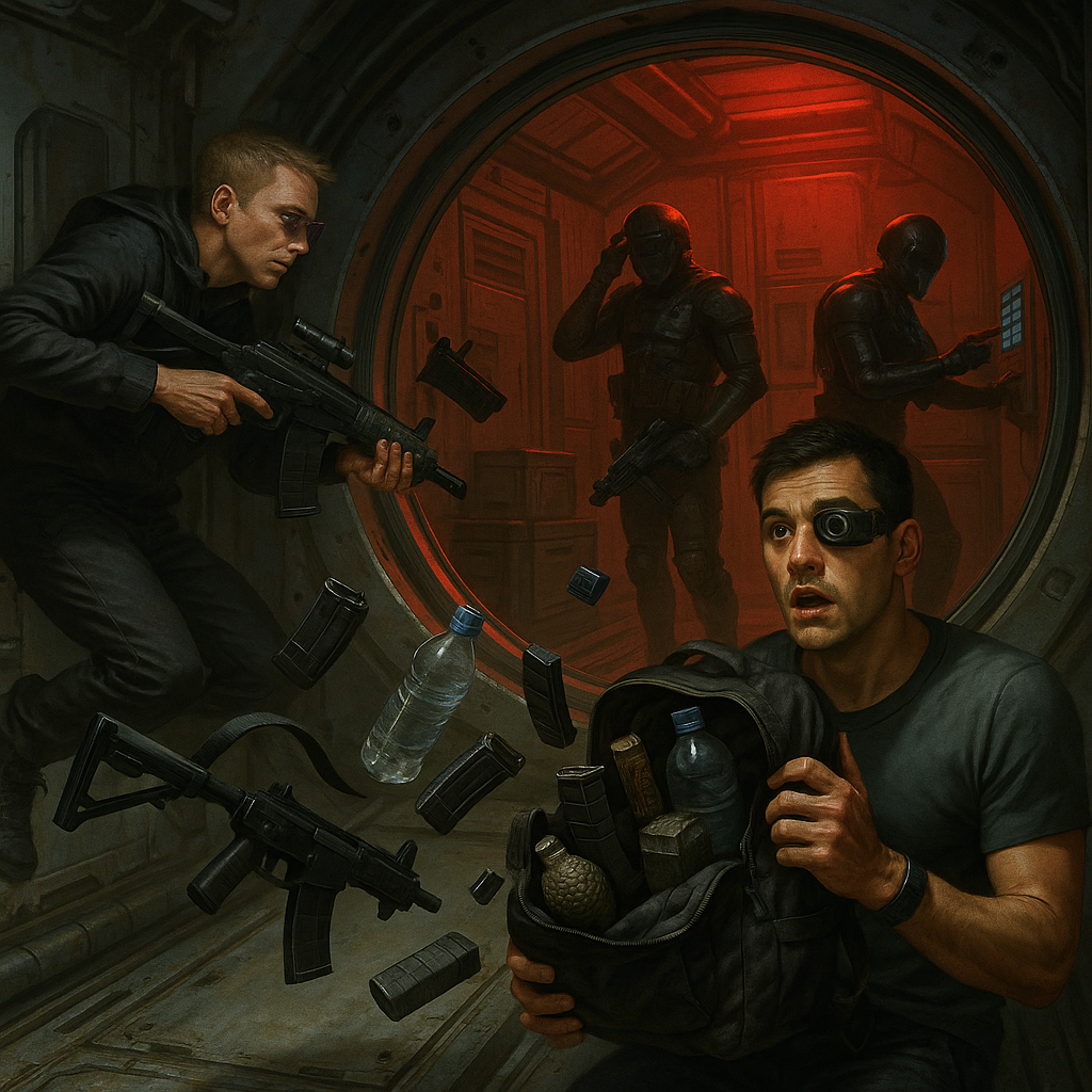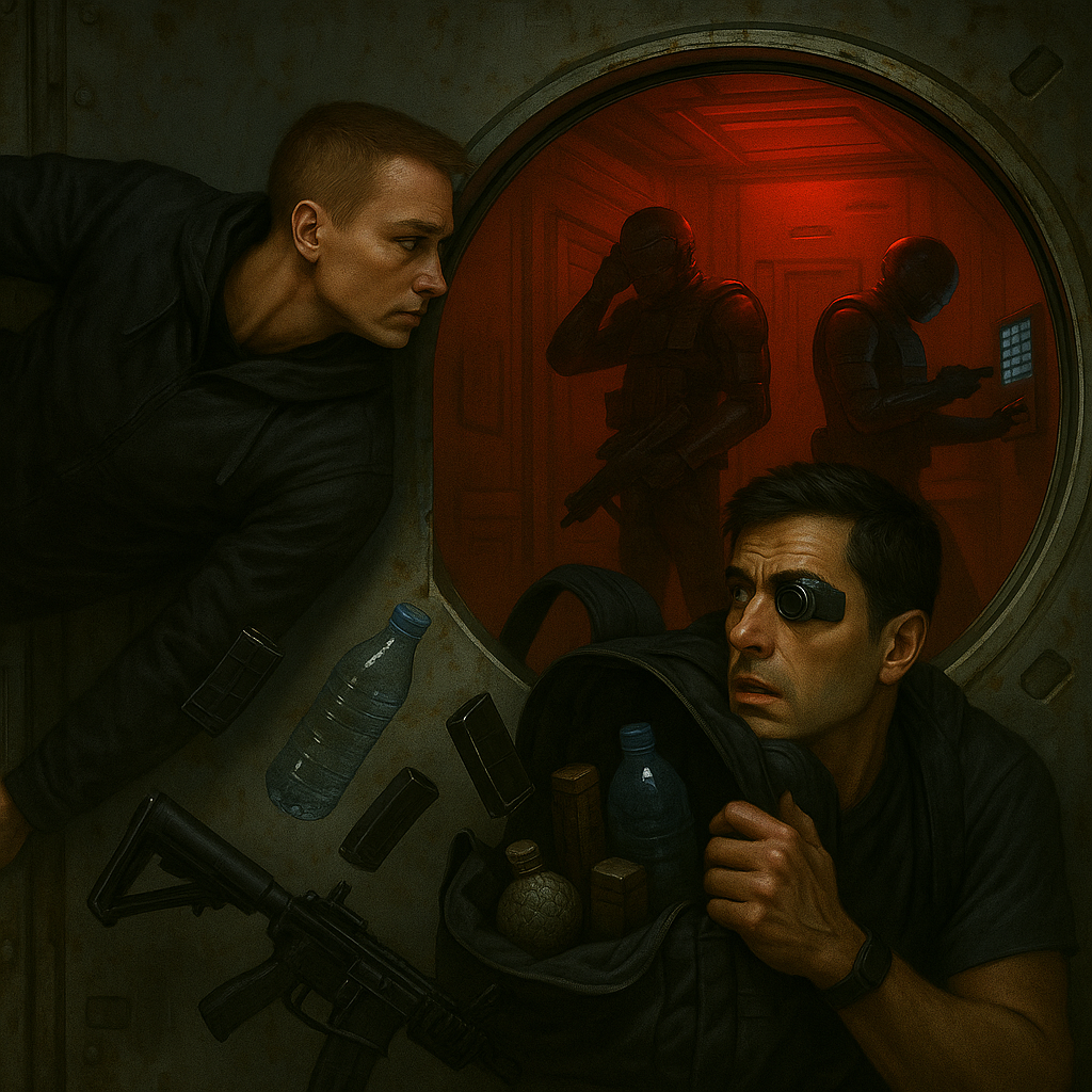 3) Плюнув на это дело, я решил заняться другой сценой. Ещё более сложной - встреча Седого и Клина с безопасниками Федерации (глава 10). Ни в какую ИИ не хочет прятать работяг от взора стражей.