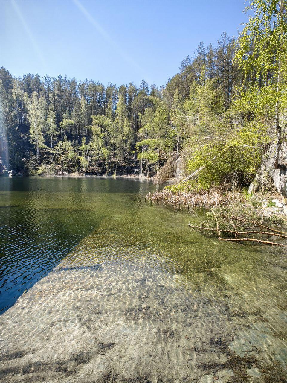 Озеро Тальков камень — визитная карточка природного парка и одно из самых красивых озер Среднего Урала, образовалось на месте карьера, в котором добывали тальк. Вода в озере чистая, но очень холодная, тем не менее ножки я там помочила.