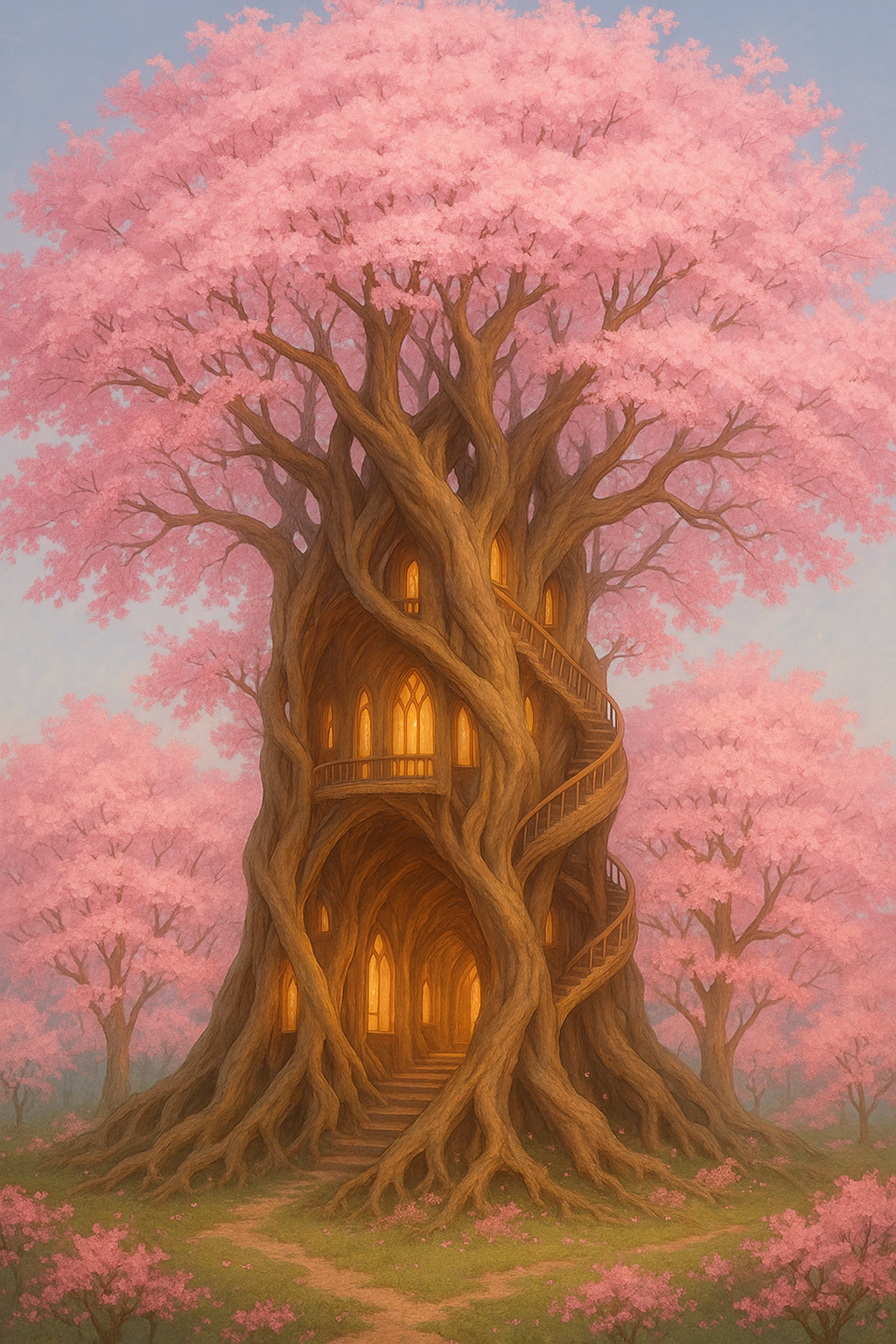 Хозяйка стояла наверху своеобразной лестницы из корней. За ней и чуть сбоку скромно сложив руки на передничке и приопустив голову, как послушная ученица, стояла Марифрей.