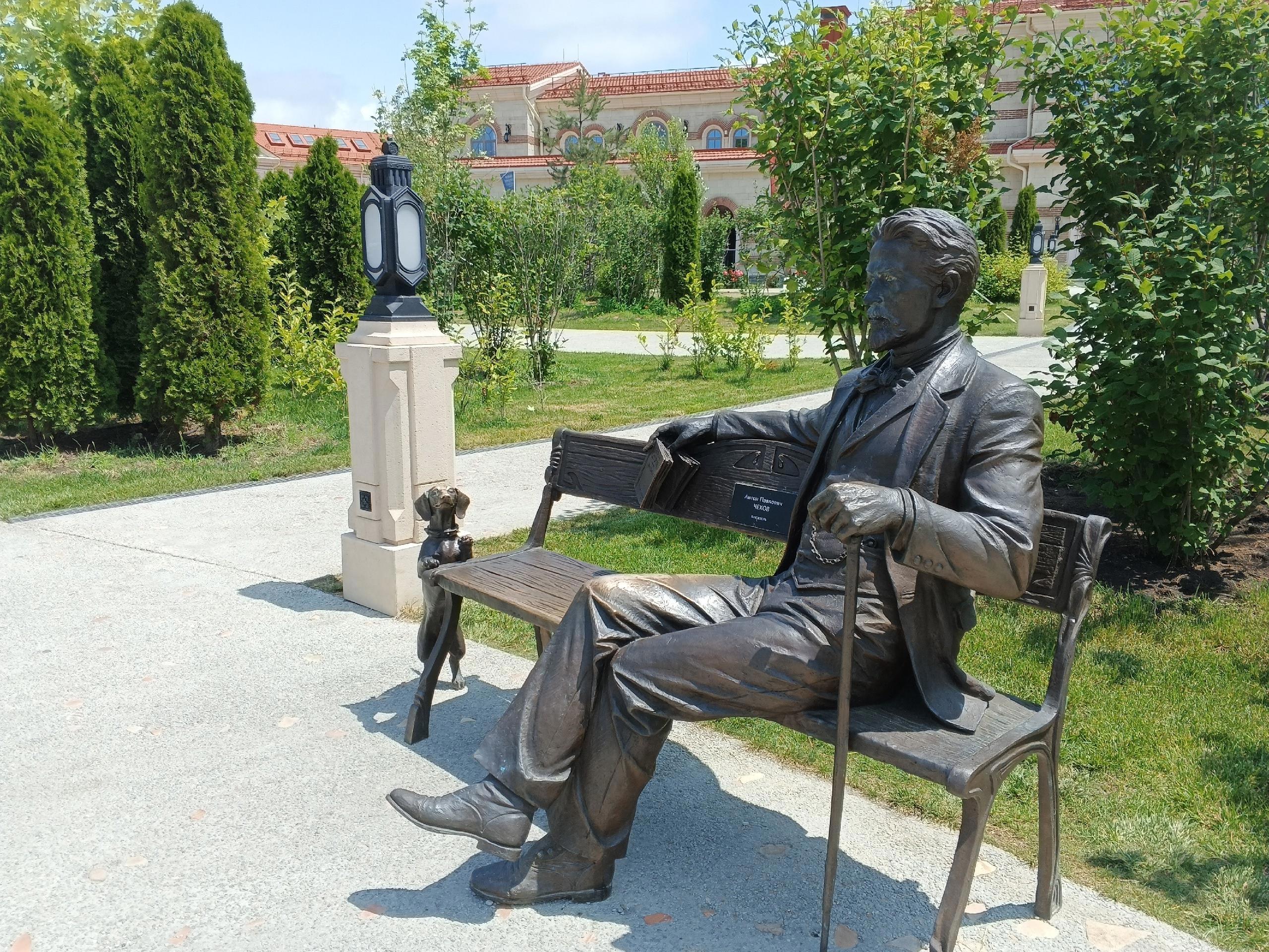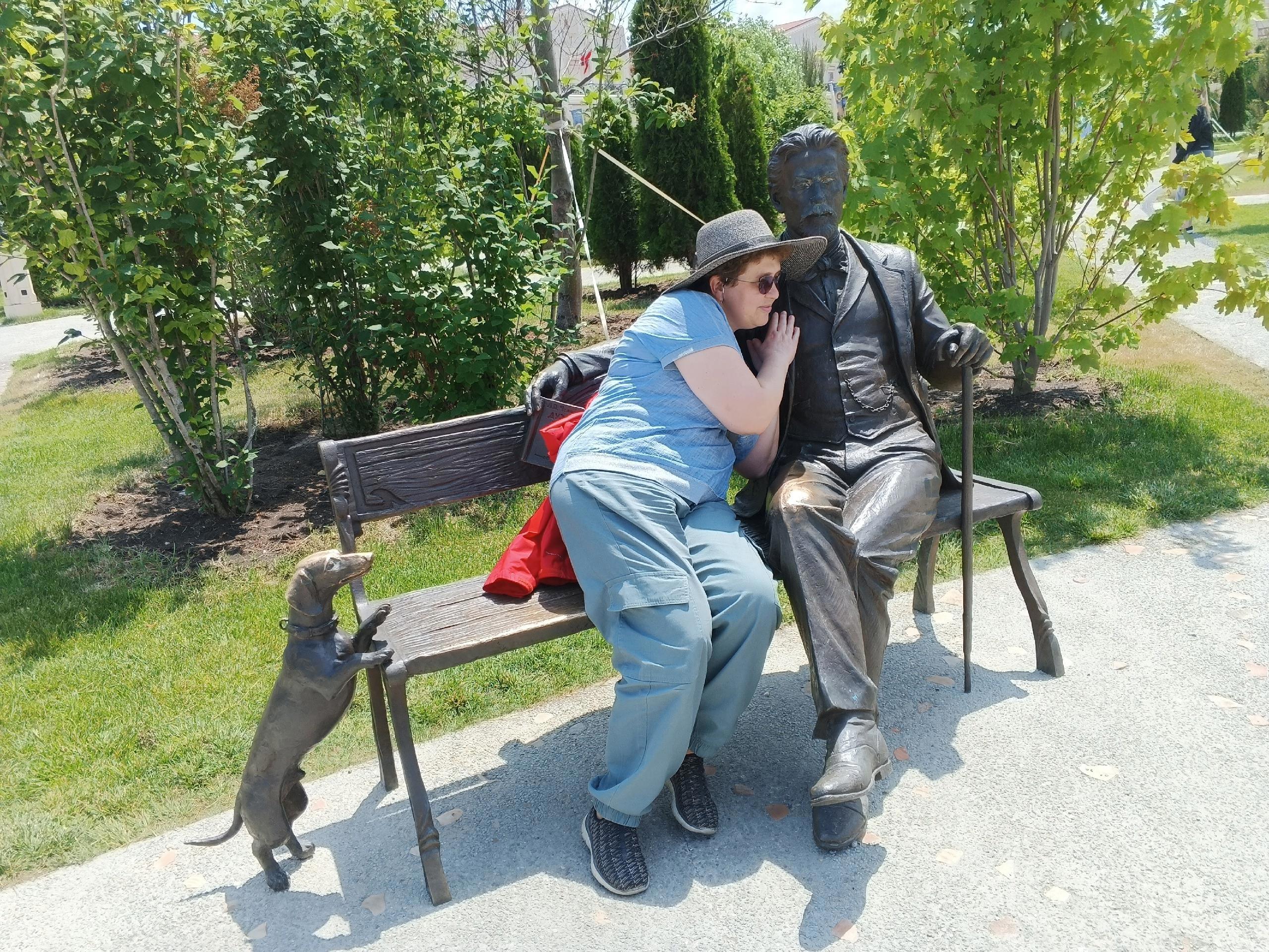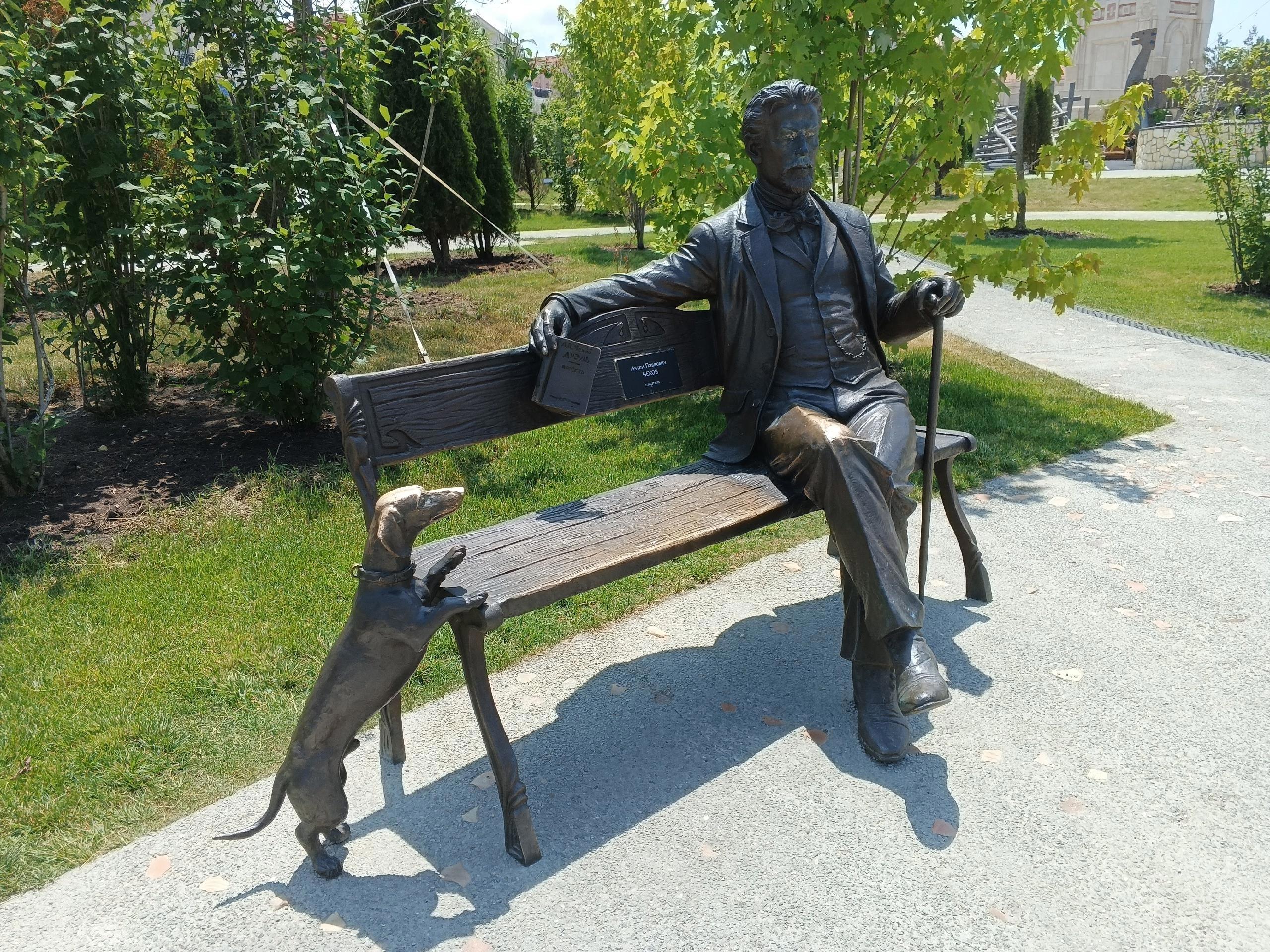 Надо сказать, когда мы были здесь в прошлом году, скульптуры Антона Павловича Чехова мы не видели. Но вот же она, есть, и выглядит просто отлично.