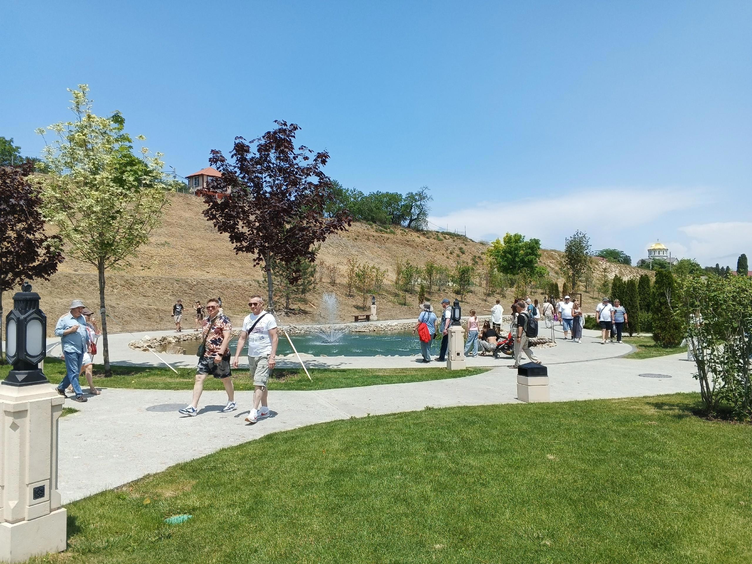 Итак, из музейно-храмового комплекса мы переходим к восстановленной части древнего русла реки, которая питала древний Херсонес. Это большой парковый комплекс с каналом, который питает подземная река, с парком, скульптурами и игровыми комплексами для детей, а так же с большой бронзовой картой самого музея Новый Херсонес.