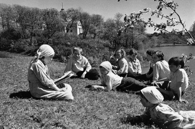 Автор: Станислав ДементьевВожатая читает пионерам стихи.