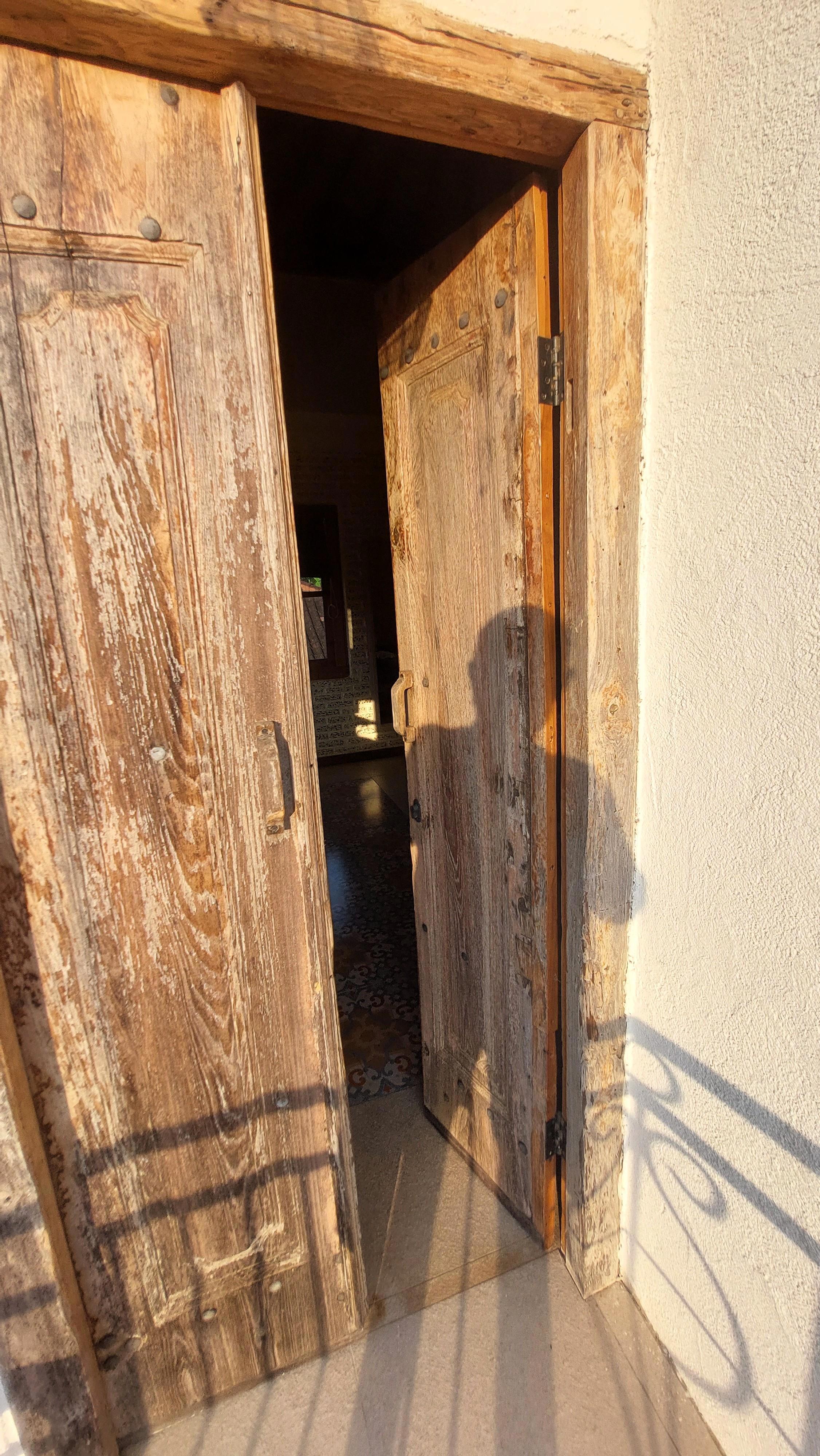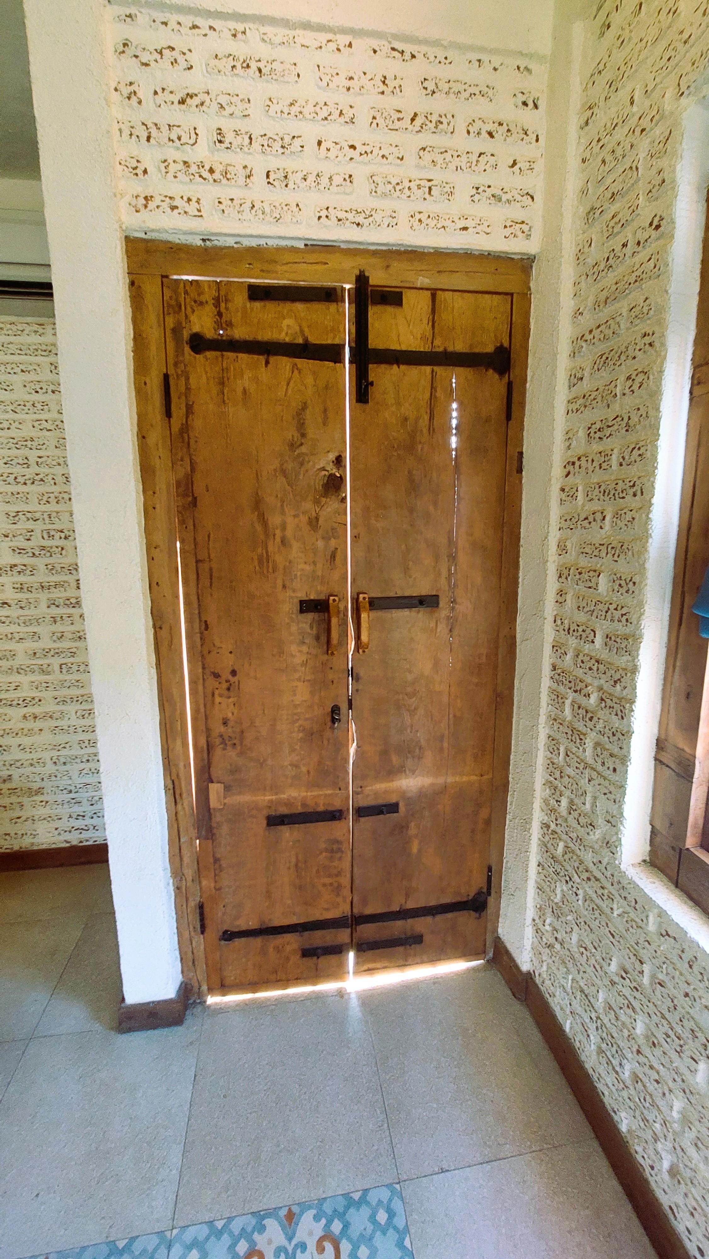 На одном дыхании обежал все комнаты. Просто обалденно. Не было никаких старых ворот, нет. Как мне пояснила Наташа, это такой стиль, когда всё нарочито состарено, так например двери в нашу комнату собраны из досок поточенного жучком, поперёк кованные накладки с грубыми шляпками креплений.