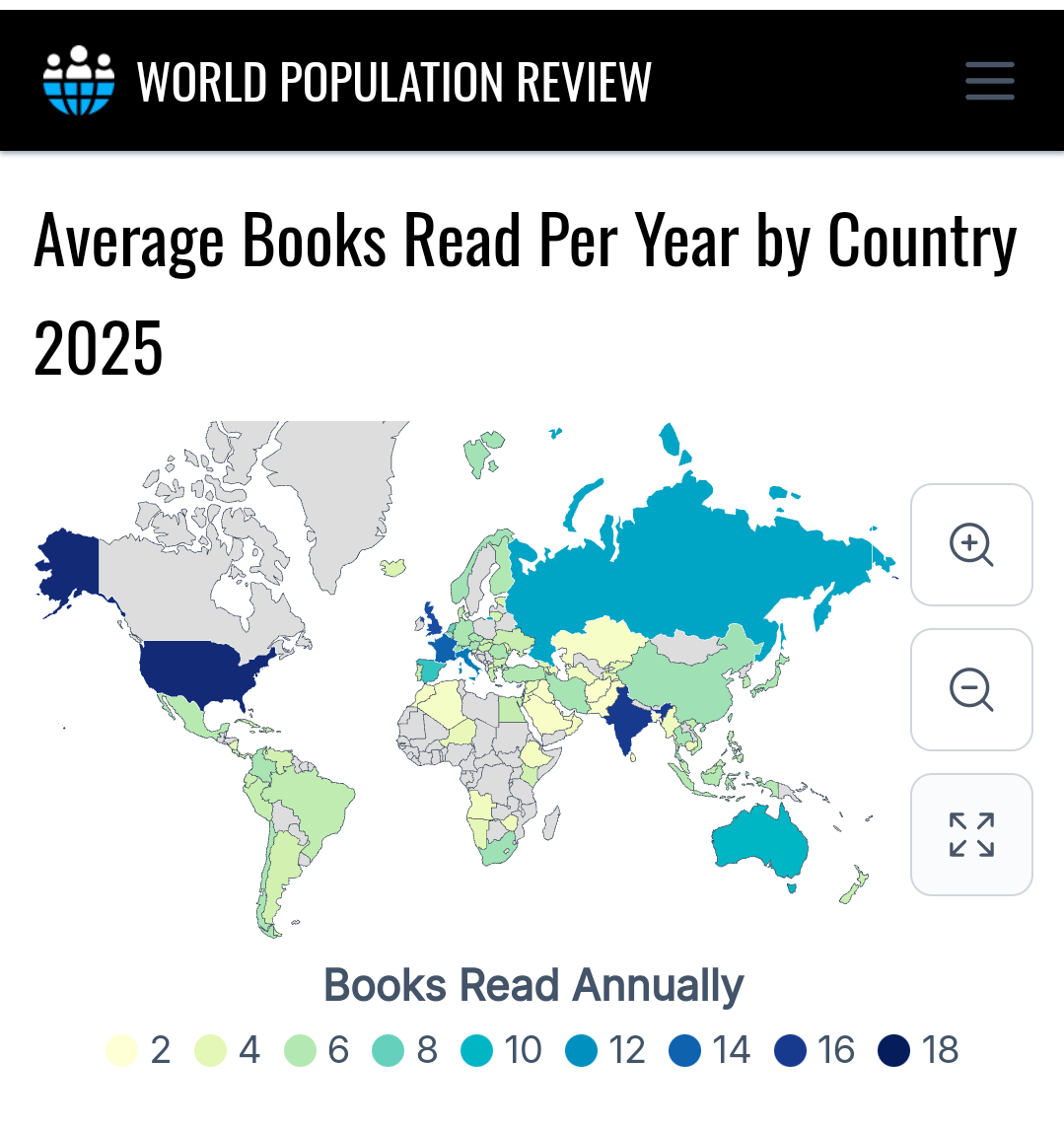 Автор: Игорь АретаноО том, где в мире больше всего читают книг, в интернетах сведения разноречивые. Но чаще всего пересказываются цифры, которые вот на этом ресурсе: https://worldpopulationreview.com/country-rankings/average-books-read-per-year-by-country
