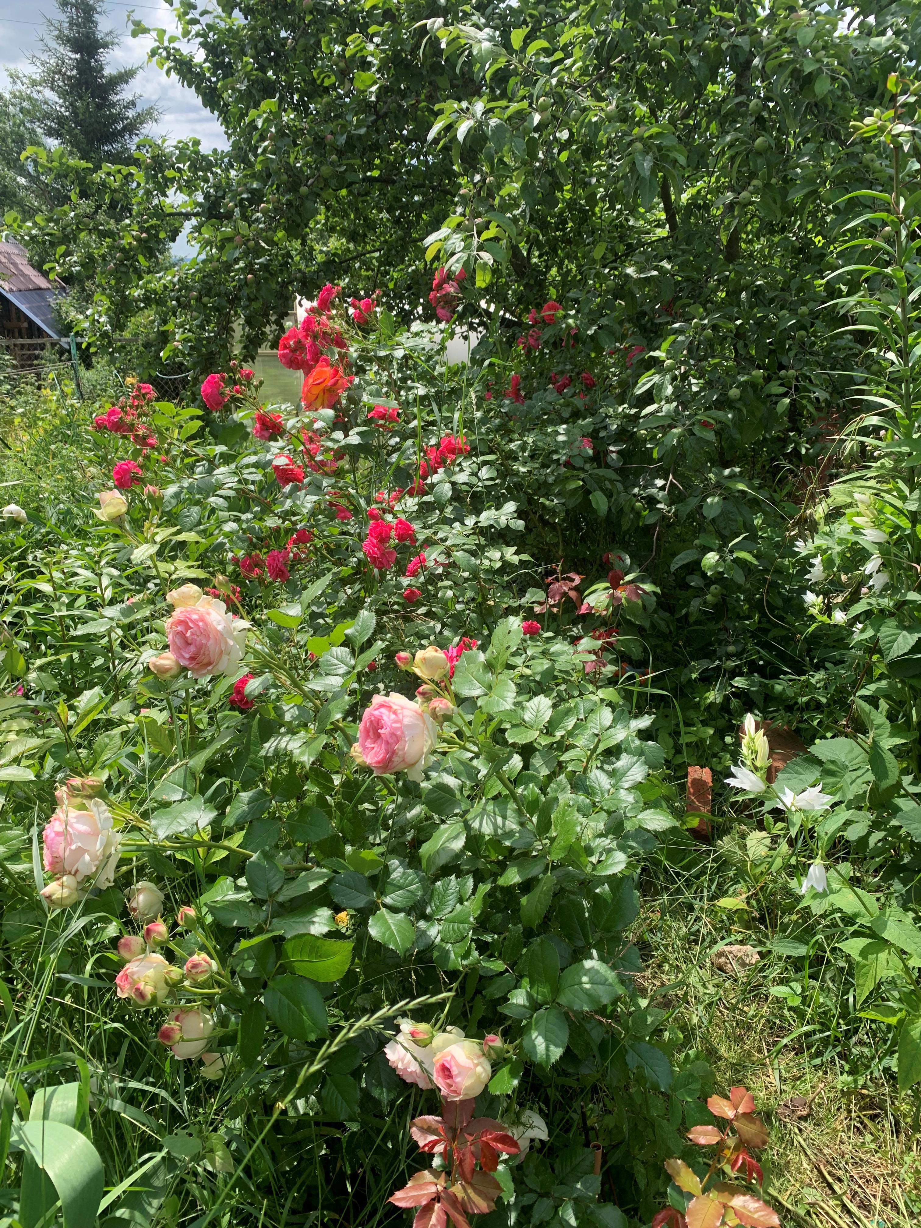 Что может быть прекраснее, чем розовый куст облитый цветами (только куст метельчатой гортезии, но это спойлер), но это чуть позже, а пока можно насладиться цветом и ароматом цветущих роз.