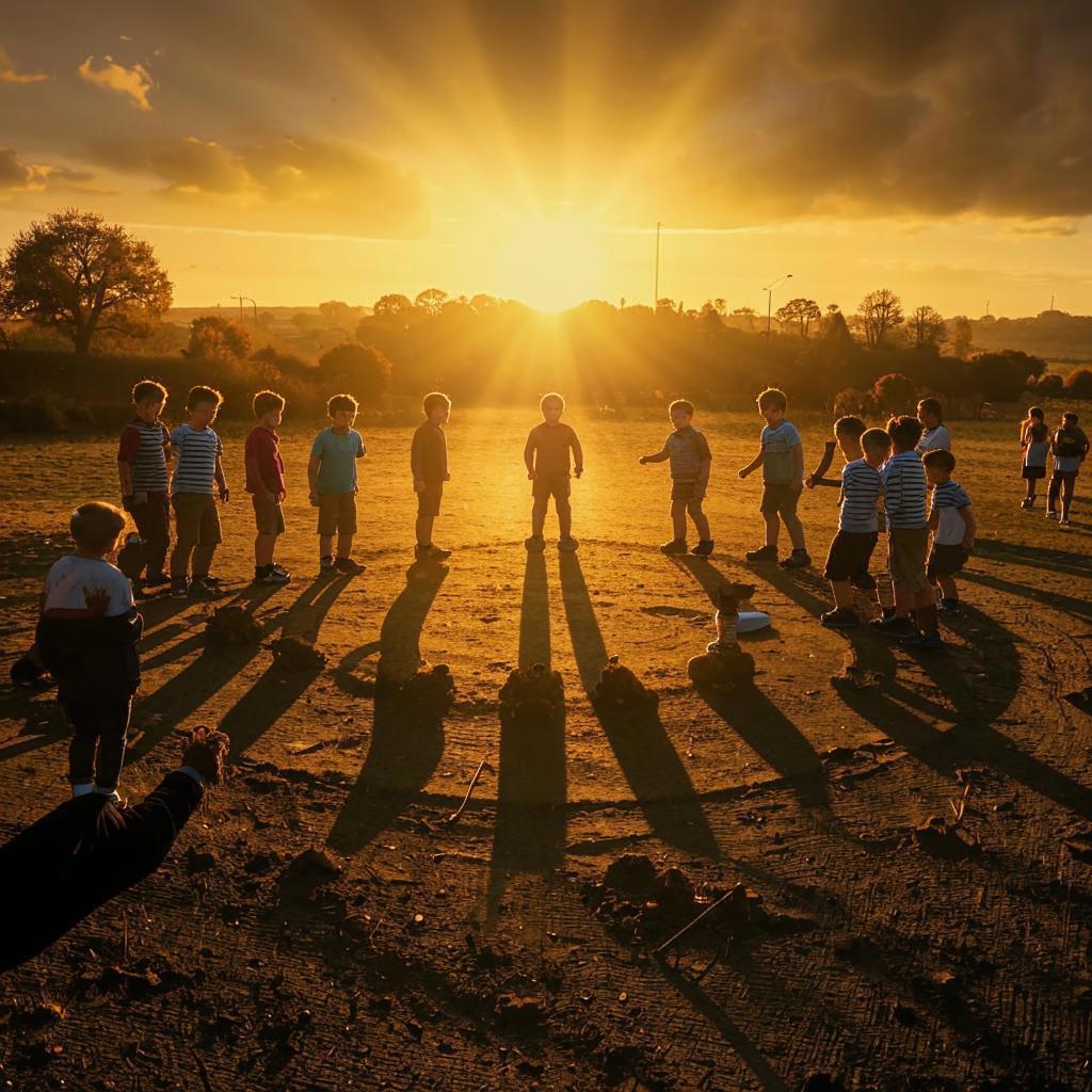 Чертится круг на земле, который делится по количеству участников на сегменты.