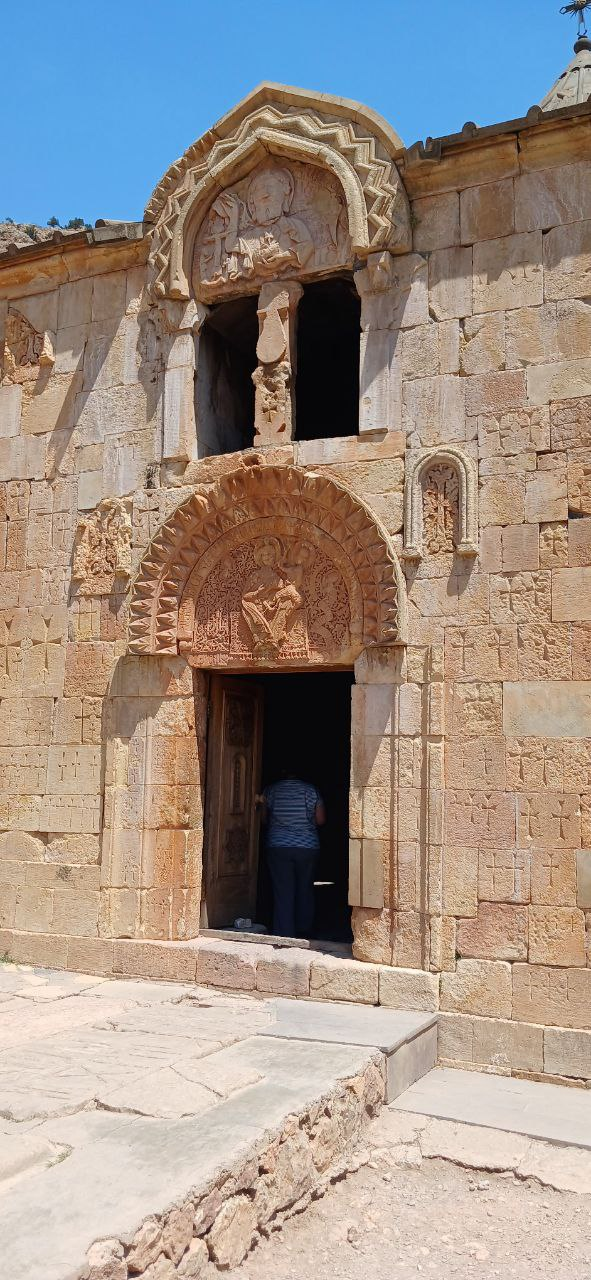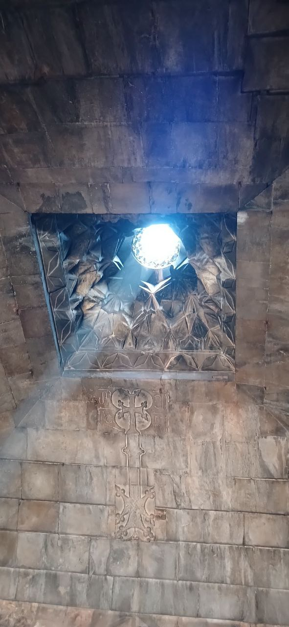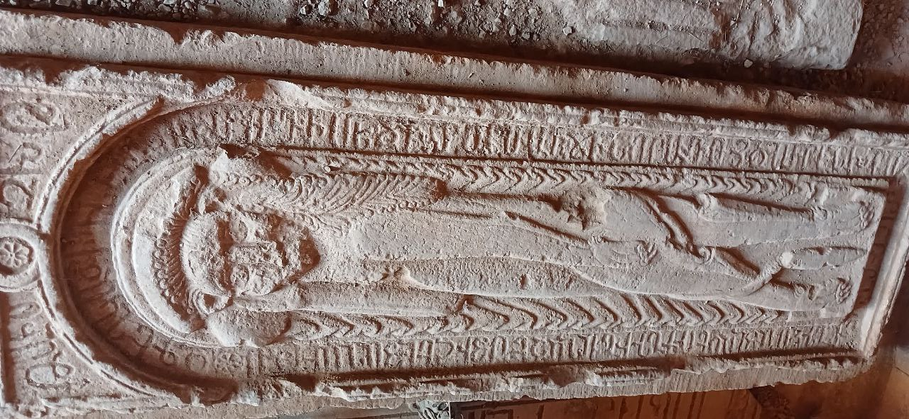 Вот, что говорит по этому поводу Виеипедия: "Боковая часовня Святого Григория была пристроена к северной стене церкви Святого Карапета в 1275 году. В ней также установлены гробницы семьи Орбелянов, в том числе великолепная надгробная плита с резным изображением человека-льва, датированная 1300 годом. Ею накрыта усыпальница Эликума, сына князя Тарсаича Орбеляна".