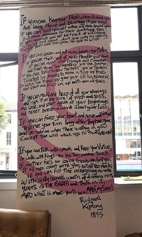 А вот в Манчестерском университете в 2018 году написали в здании студенческого союза все стихотворение целиком - решили, понимаешь, напомнить подрастающему поколению разумное, доброе и вечное.