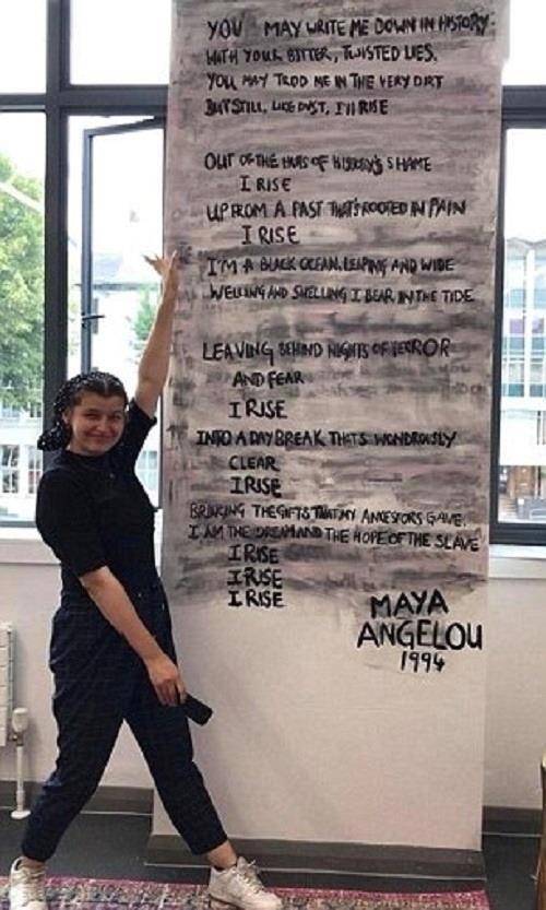 Как заявила Фатима Абид, генеральный секретарь студенческого профсоюза Манчестера: «Сегодня мы всей командой убрали творение империалиста со стен нашего профсоюза и заменили их словами Майи Энджелоу. Видит Бог, черные и коричневые голоса были достаточно часто вычеркнуты из истории, и пришло время попытаться изменить это, по крайней мере, в нашем профсоюзе».