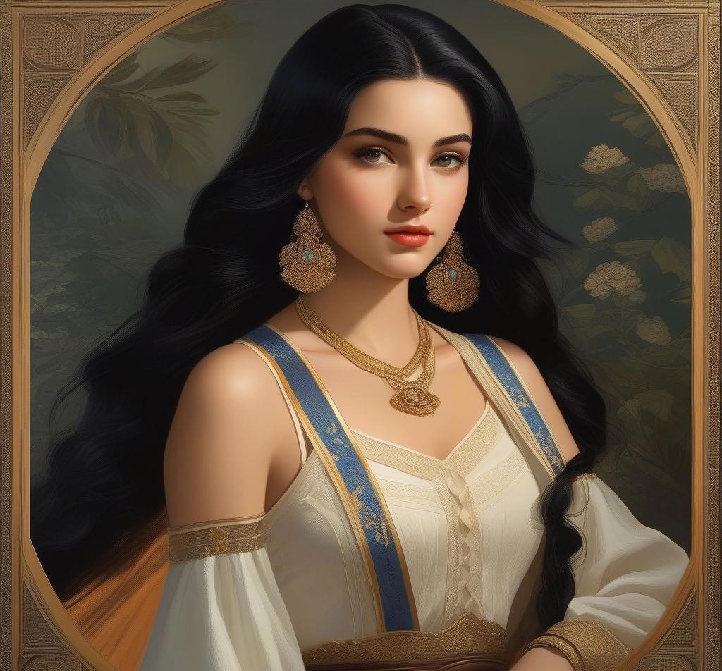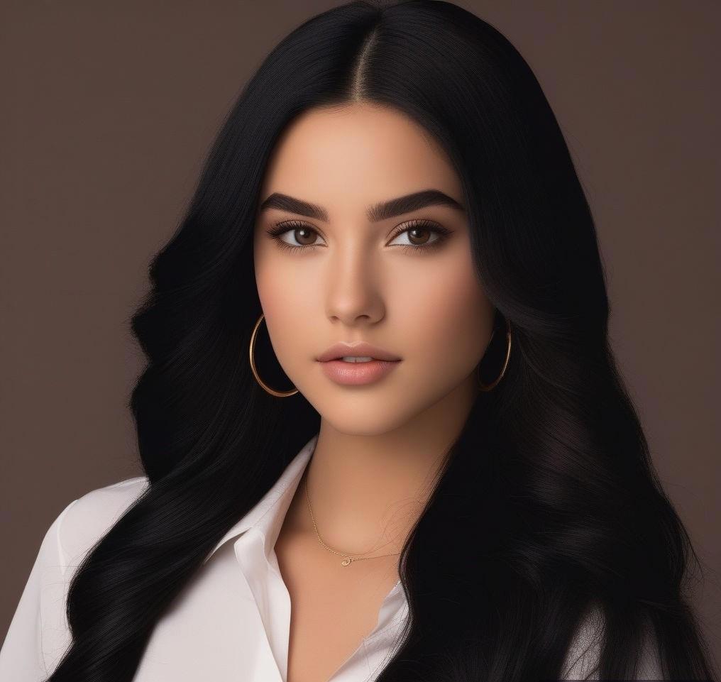 Семнадцатилетняя девушка с длинными, ниже колен, черными волосами и карими глазами