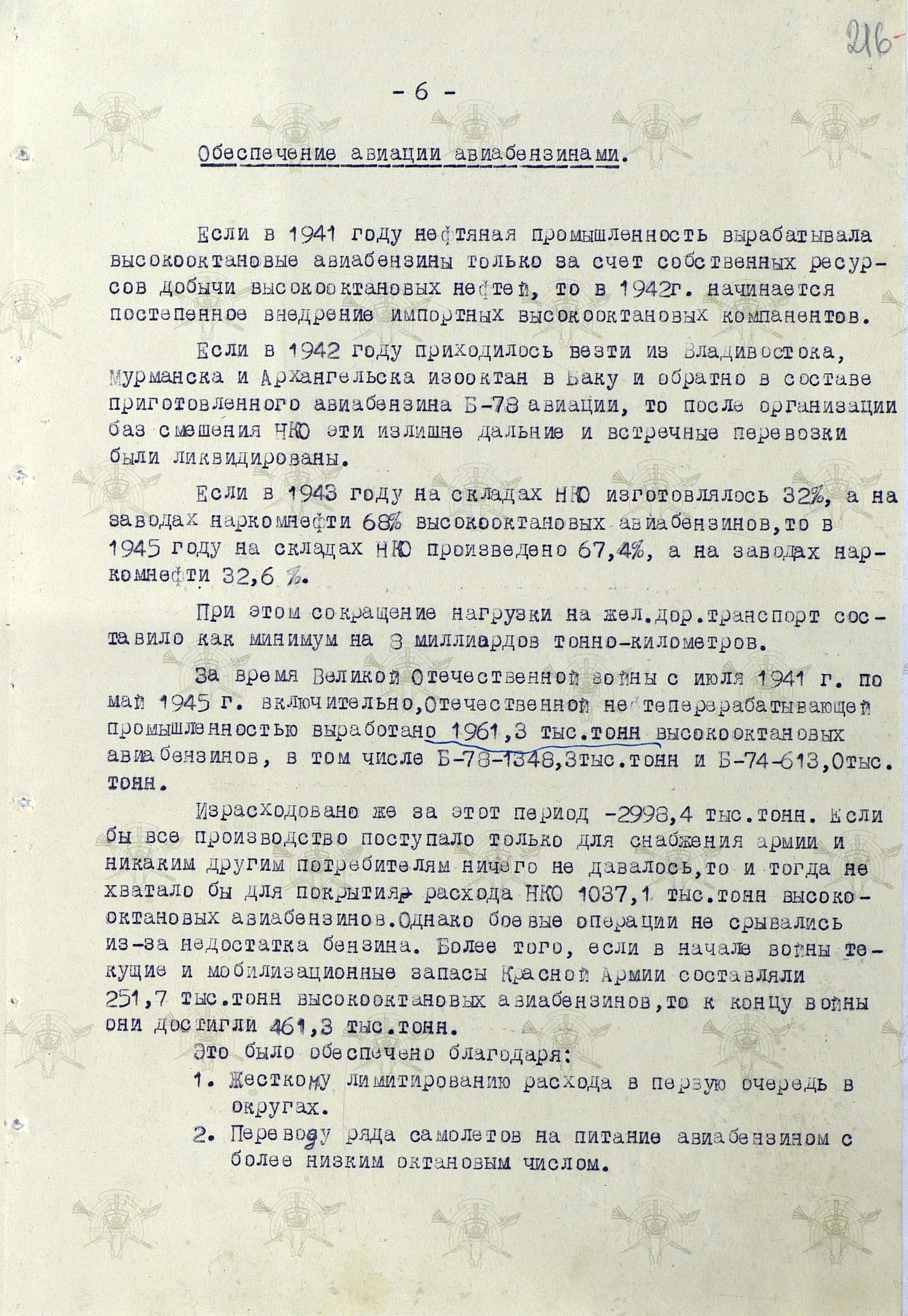 И удача улыбнулась в очередной раз. Оказалось, что в дело с материалами Главного Автомобильного Управления Красной Армии подшит краткий доклад Службы снабжения горючим Вооруженных Сил СССР за время Великой Отечественной войны. Небольшой, чуть больше тридцати листов, но достаточно информативный.