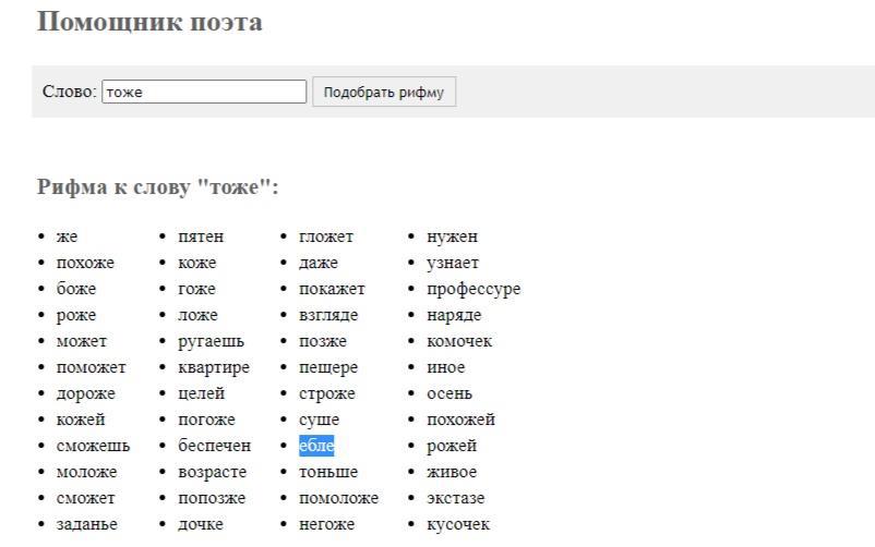 Сегодня решил попробовать попользоваться генератором рифм, так к банальному слову хотелось подобрать что-нибудь эдакое-разэдакое. Подобрал, называется....