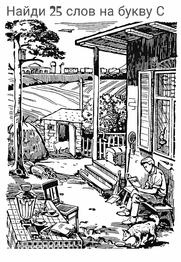 Автор: Катерина ЛаптеваДрузья, картинка ниже нужна для тренировки внимания, но мне пришла в голову мысль: что, если попробовать написать короткий рассказ, используя найденные слова на букву "с"?))