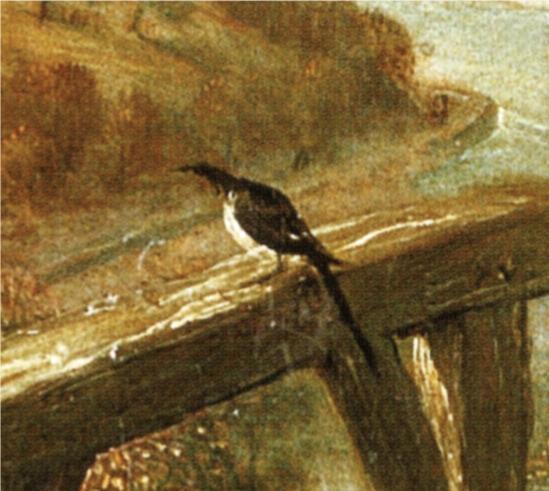 На виселице сидит сорока. Птица олицетворяет болтливость, ведущую к клевете и предательству.