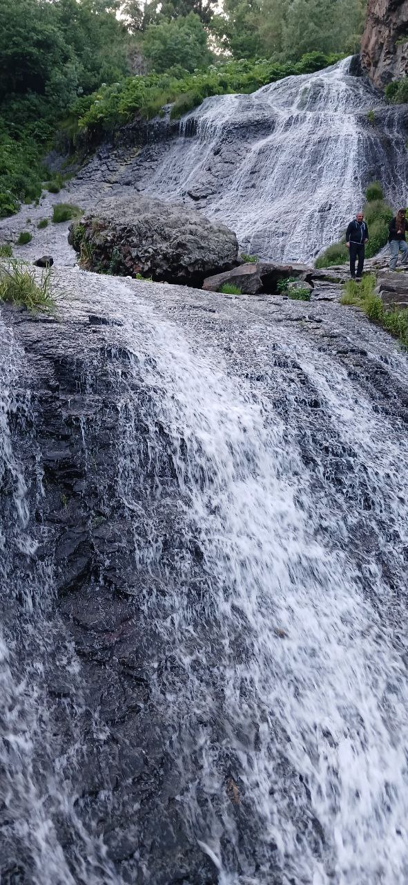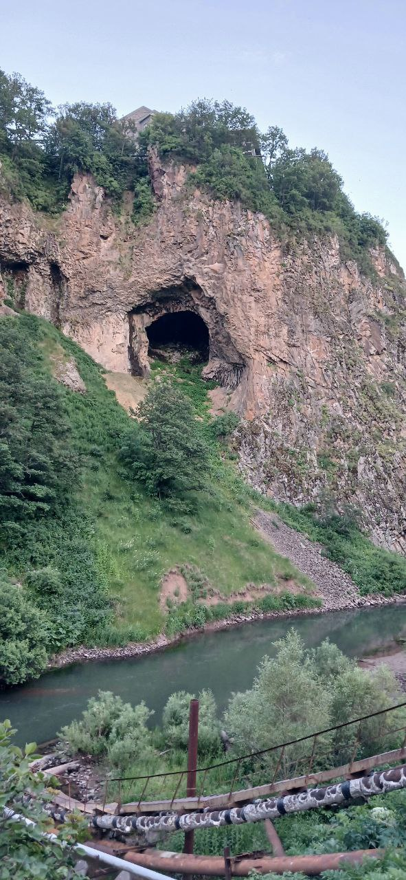К нему ведёт узкий серпантин по склону ущелья реки Арпа, но покрытие хорошее, так что спустились без проблем.