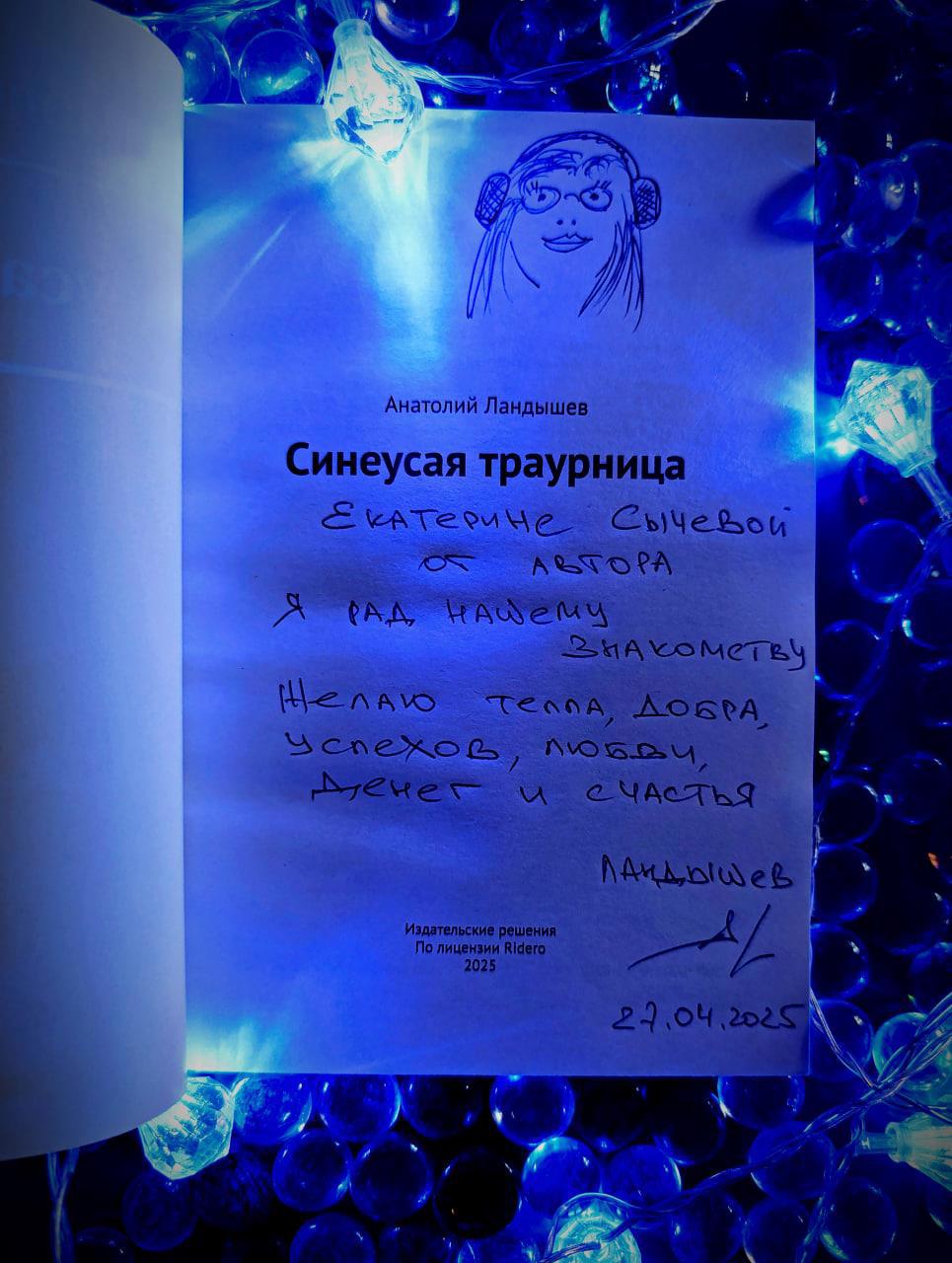 А что же такое кое-что ещё? Ещё я хотела сказать, что Анатолий очень добрый и щедрый человек, так как он выслал мне свою книгу "Синеусая траурница". Правда она очень красивая?