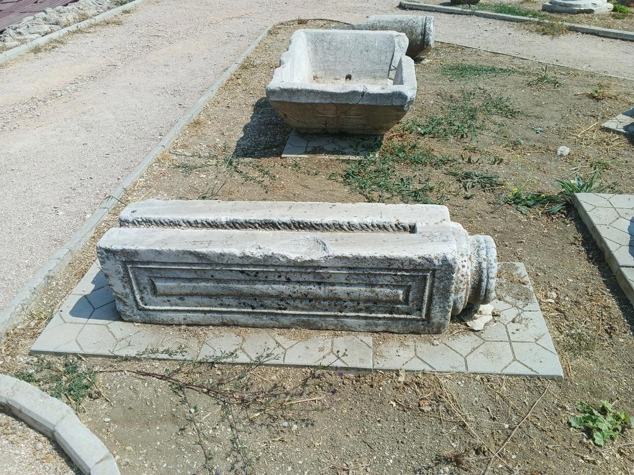 Отойдя от театра мы попадаем в лапидарий. Чаще всего в лапидариях выставляют надгробия, надпись на таблицах, погребальные урны и т.д. Но не менее часто в лапидариях можно увидеть и колонны, и части стен, и плиты из лестниц или пола домов или храмов. Здесь собрали колонны, капители, основания колонн, есть даже что-то напоминающее небольшую купель.