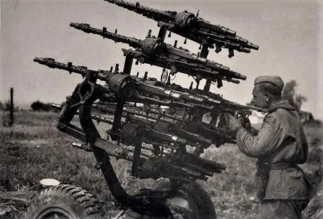 Недавно на Пикабу встретил пост про Вторую мировую "10 редких исторических фотографий Второй Мировой, от которых мурашки по спине и ком в горле", где двое бойцов Советской Армии собрали из трофейных пулеметов MG 34 зенитную установку. Там даже назвали их фамилии - Коберидзе и Русаков.
