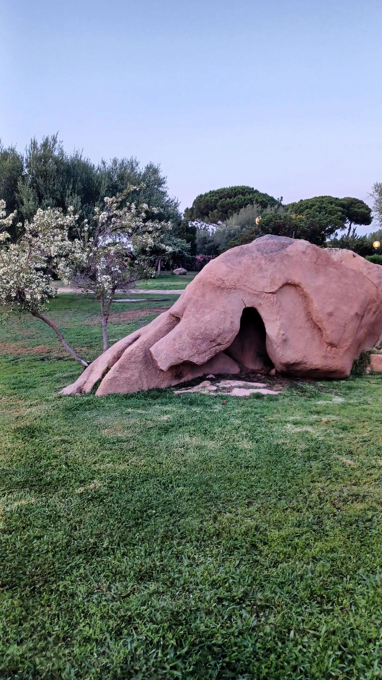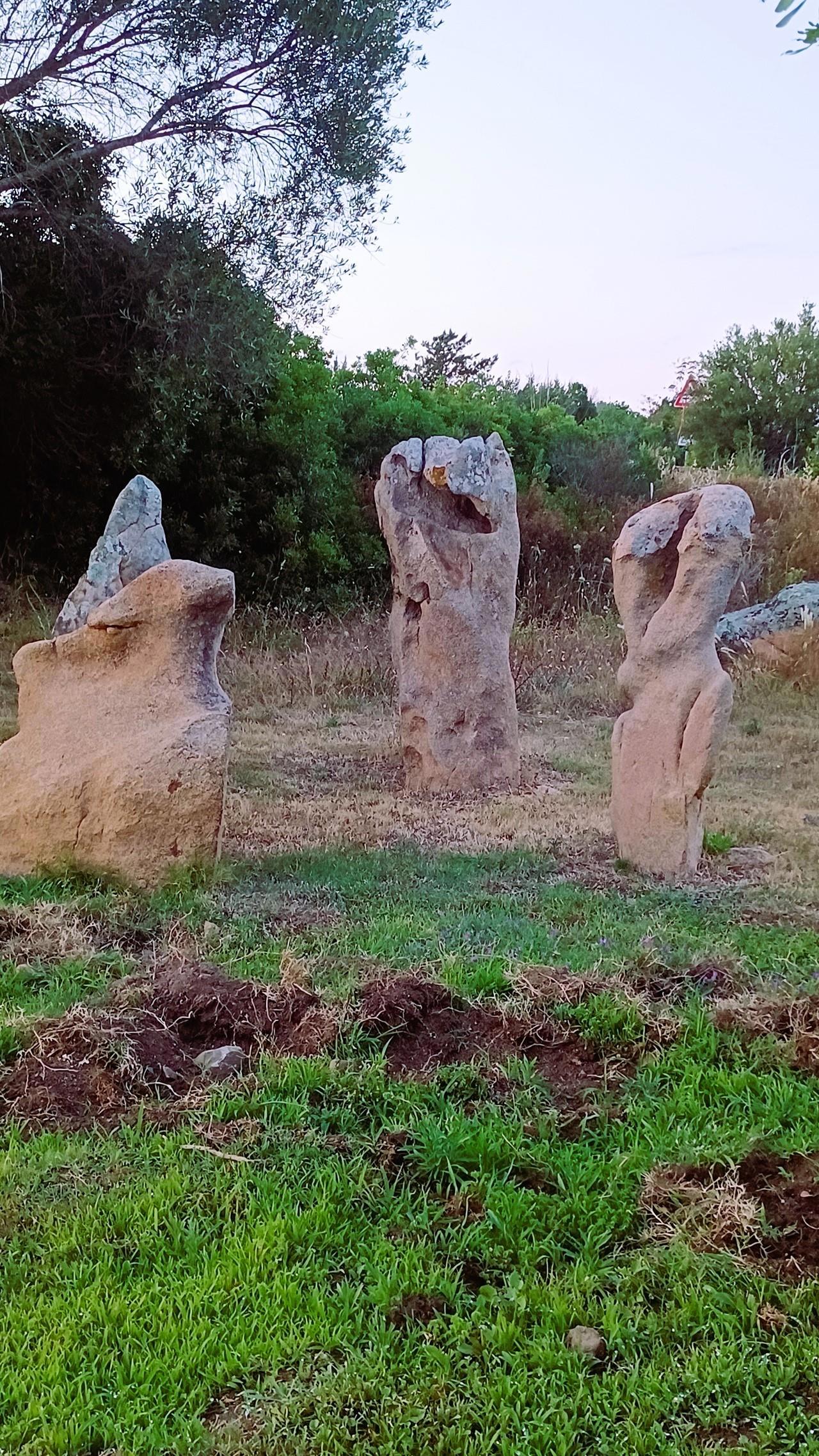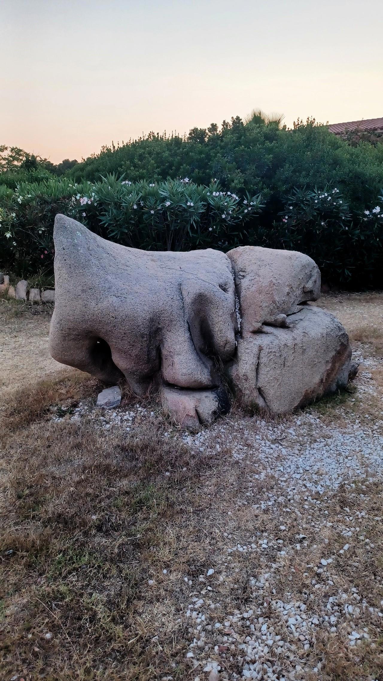 Прогулки в окрестностях отеля - там тоже было много интересного, например, природные скульптуры - результат многовекового выветривания. Сама земля Сардинии не очень приветливая - сам фото выше - низкая растительность и вот такая каменистость. Уже сейчас все выжжено, короме полупустнынных растений и там, где нет полива.