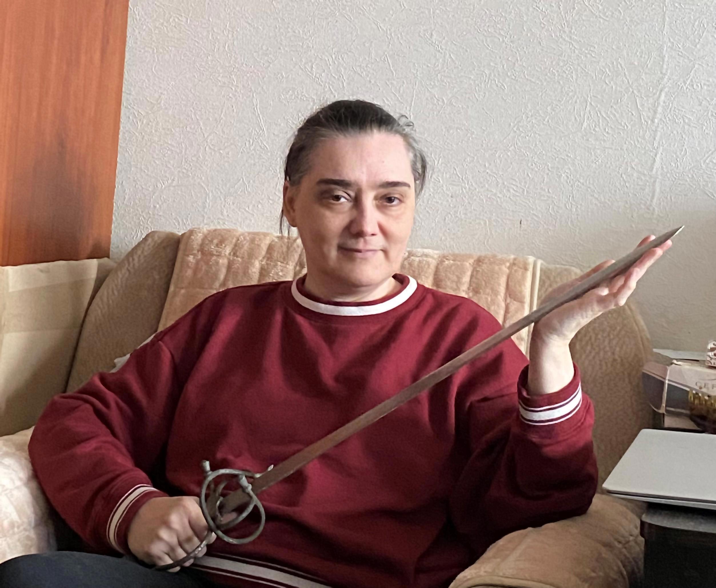 Меч уменьшенный, поэтому прекрасно подходит под мою руку.