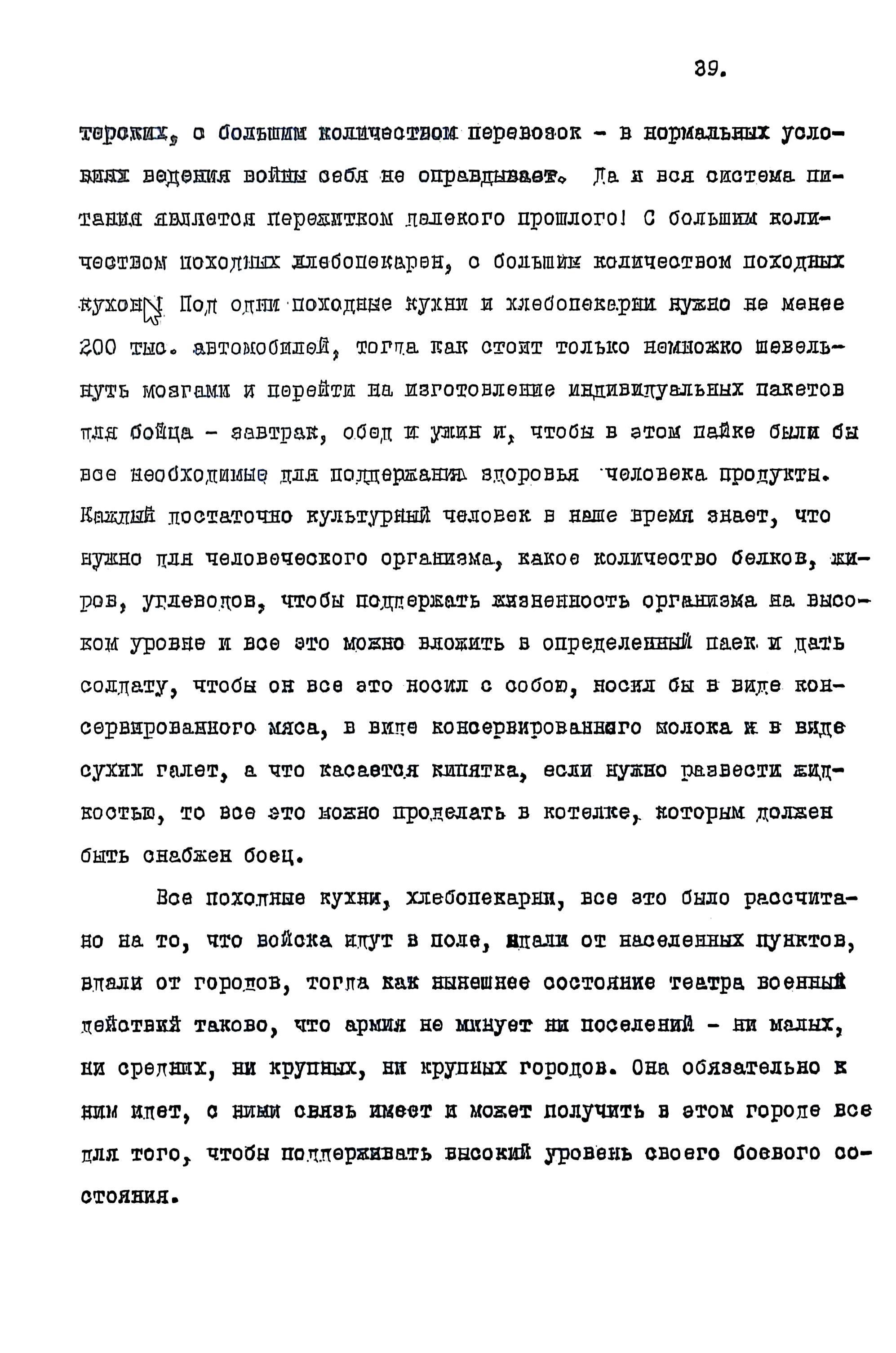 И если с мнением генерала А.В. Хрулёва о необходимости создания лёгкого, калорийного, вкусного сухого пайка или индивидуального рациона питания полностью соглашусь, то предложение по отказу от полевых кухонь, автохлебозаводов и другой техники тыла, выглядит, по меньшей мере, неожиданно.
