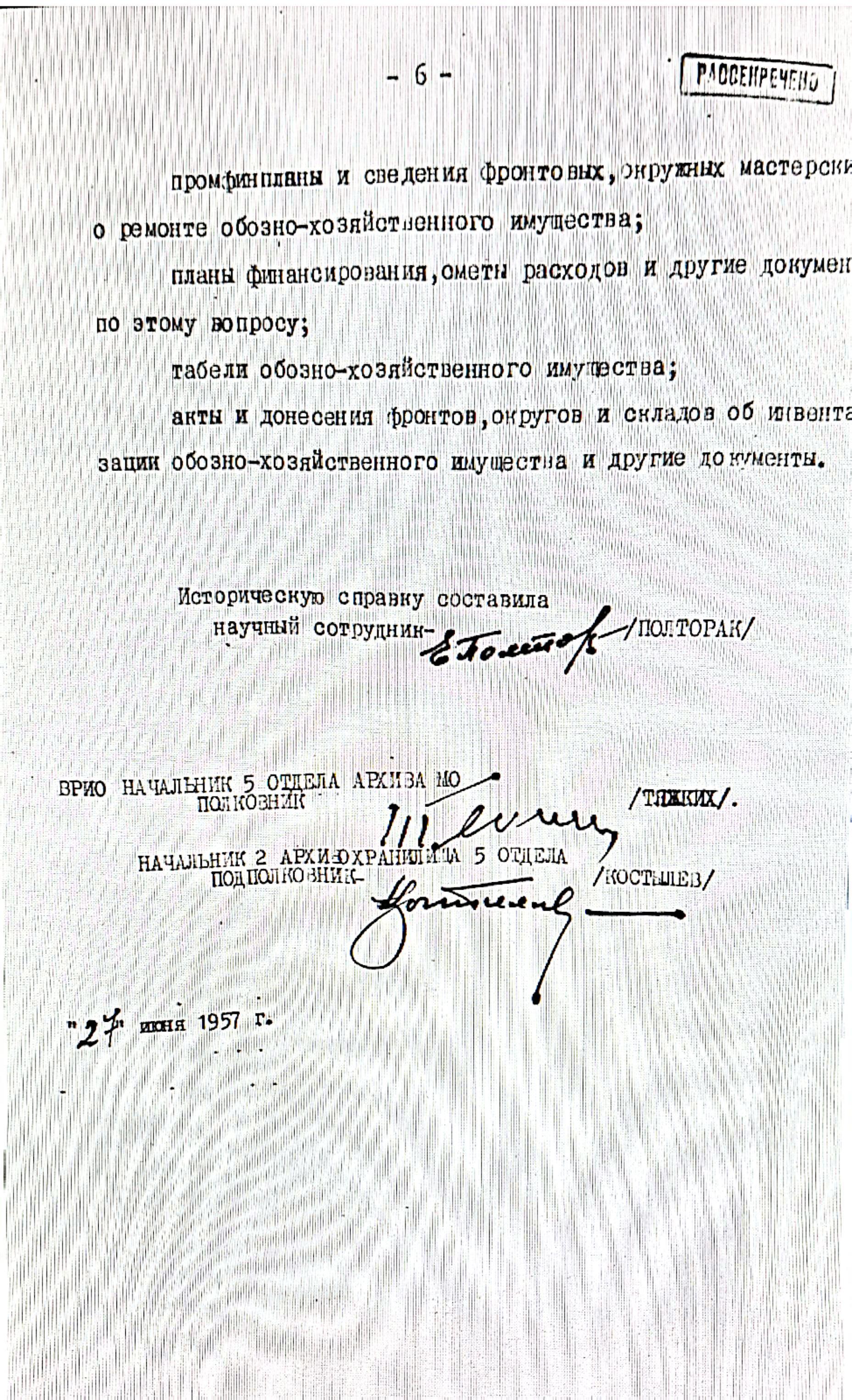 Но, даже за этот небольшой временной отрезок, службы обозно-хозяйственного снабжения оставила заметный след и в истории Великой Отечественной войны, и в истории тыла Вооруженных Сил Советского Союза.