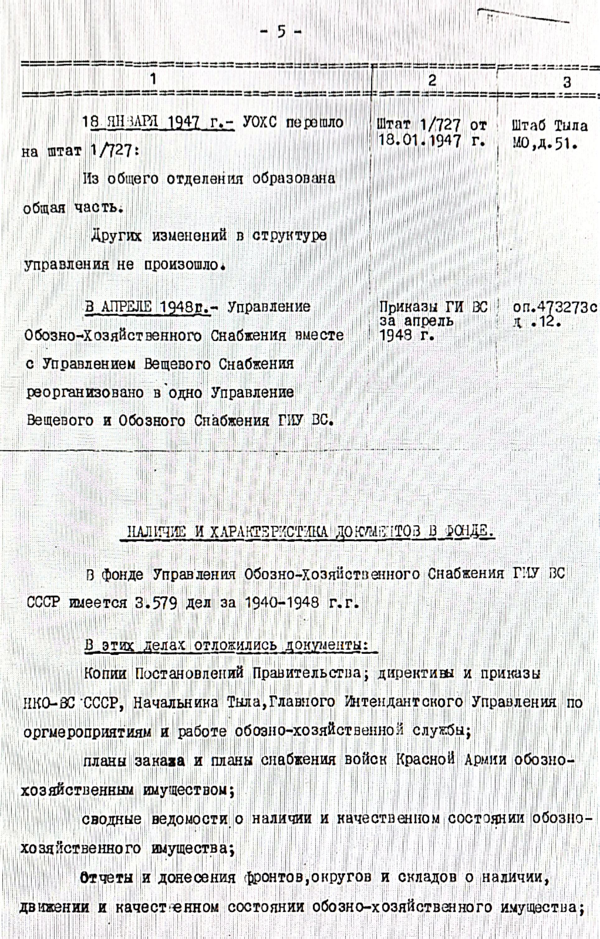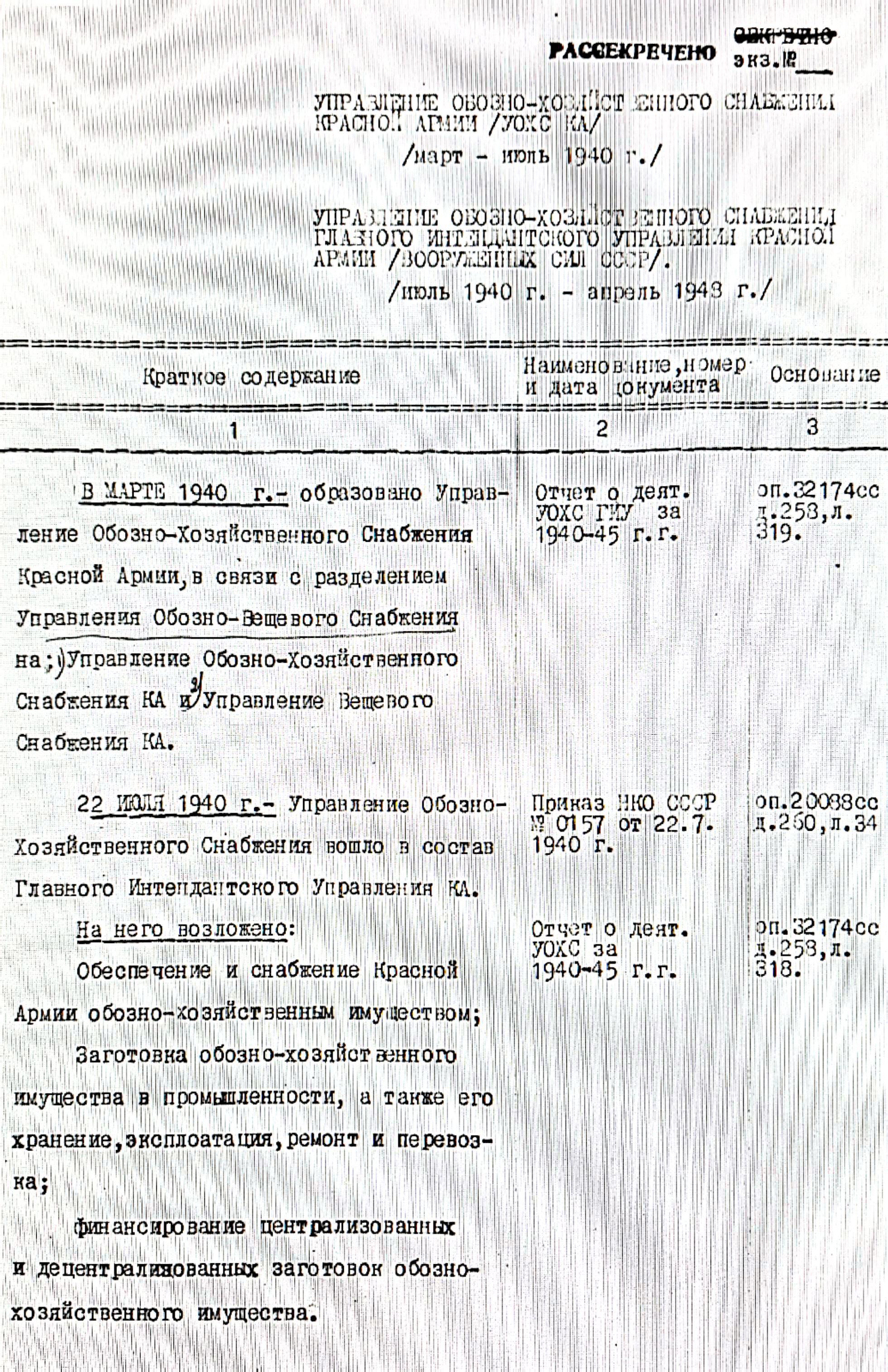 Краткая история УОХС изложена в деле под названием «Историческая справка Главного Обозно-Хозяйственного Управления ГИУ КА (марте 1940 года. — апрель 1948 г.)».