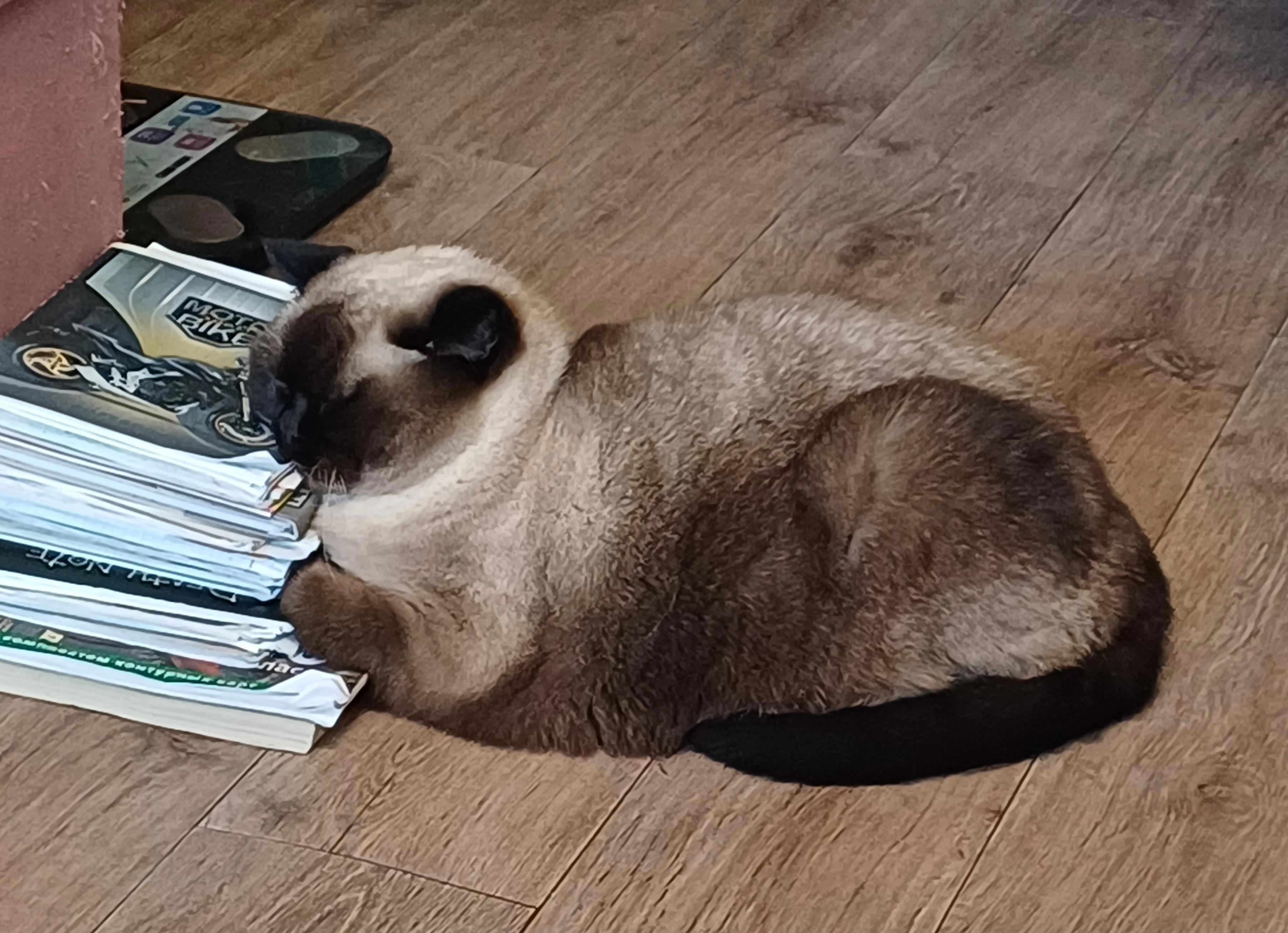 А это наш, кот учёный. Студенческое поверьте гласит, что если положить под подушку тетрадку, то знания впитаются сами: