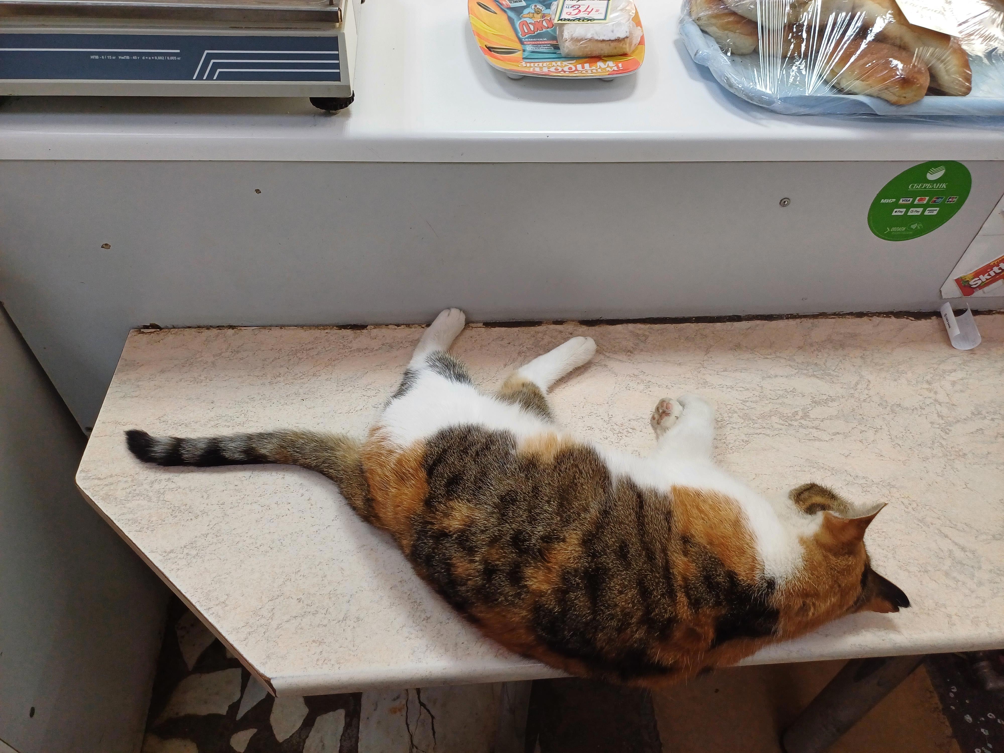 Кот-консультант в магазине, куда я зашёл за колбасой (портрет его я как-то уже выкладывал). Нужной колбасы, увы, не оказалось: