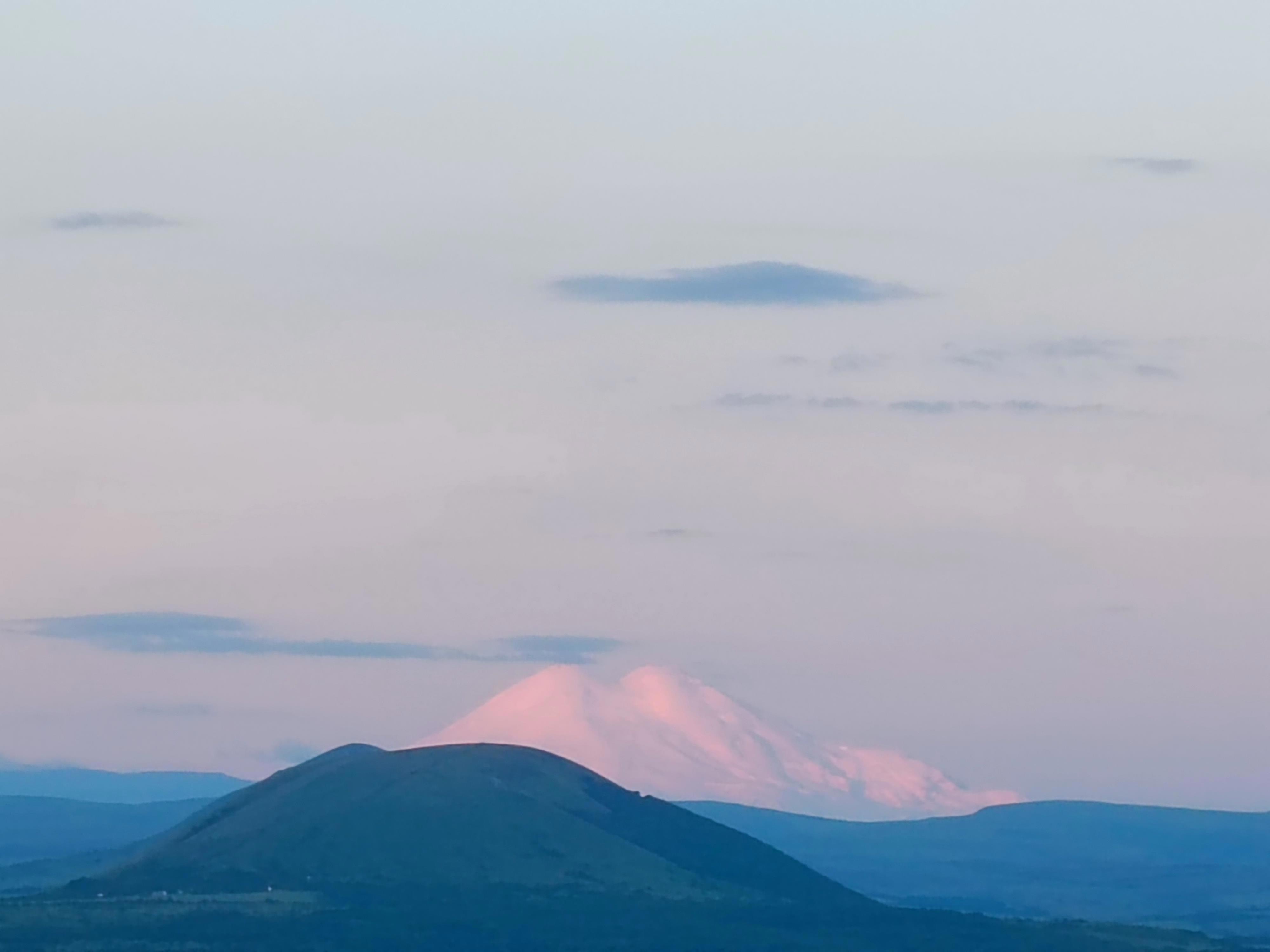 Красавец Эльбрус и Кавказский хребет. 4:30 утра 18 июня 2025 года. Пятигорск. Встреча рассвета на горе Машук. Эолова арфа.