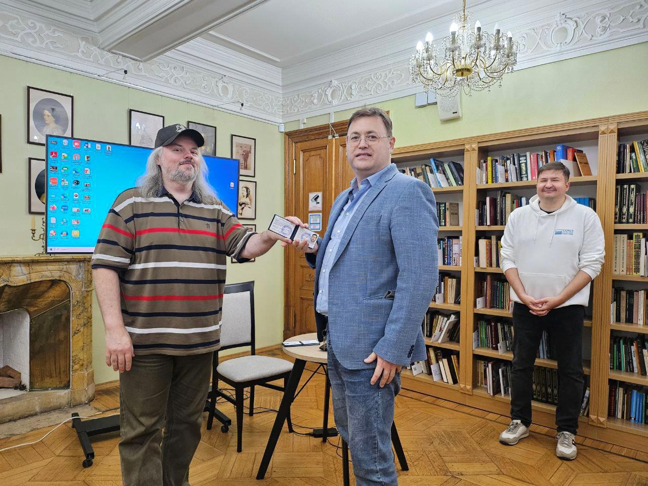 Как видно на фото, вручение происходило в читальном зале библиотеки имени товарища Пушкина в рамках движухи нашего Клуба любителей исторической фантастики. Кстати, следующая лекция в этой библиотеке и этом клубе будет читаться мною, одним из учредителей клуба 24 июля. Тема лекции: инструменты достижения достоверности в историко-фантастических романах. Говоря коротко, в книжках про попаданцев, где корень - это именно "попа". Сразу скажу, кто может посетить сие мероприятие: любой зарегистрировавшийся на неё или просто по нахалке припершийся в библиотеку с желанием меня послушать. Вопрос второй: кому это надо? Вообще, кому надо встречаться с писателем и слушать его устно? Наверняка автор всё умное уже сказал в книжке. Или нет? Моя конкретно эта лекция обращена к тем, кто начинает писать, кто думает, не начать ли писать, кто подозревает, что написал бы лучше всех этих бездарей. Читатель? А надо ли ему понимать, в чем фокус, какими нехитрыми приемчиками его принуждают тратить личное время на чтение книг? Если вам интересно, как творится волшебство, идите. Потом только не удивляйтесь.