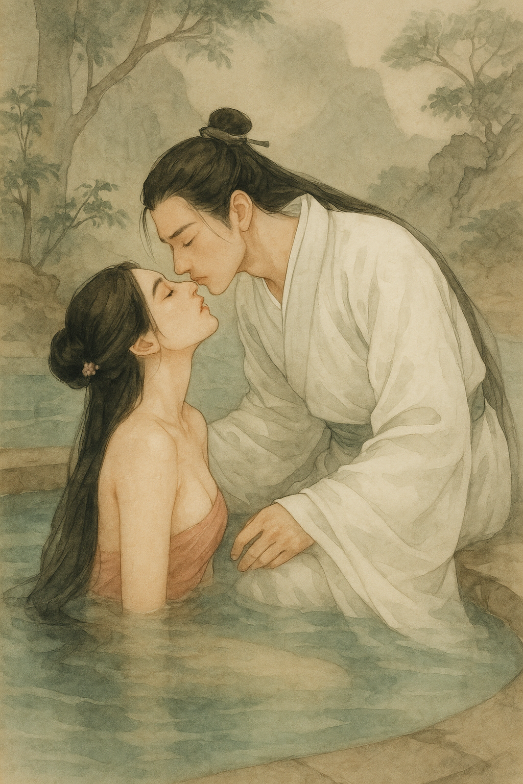 Супругу он нашёл в купальне. Ань Син сидела в усеянной цветочными лепестками воде, расслабленно откинувшись на деревянный бортик бассейна.