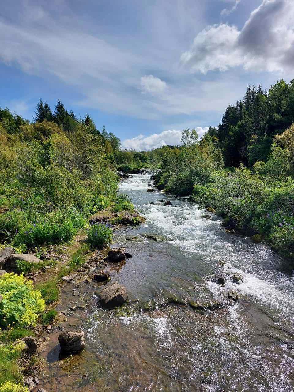 Были в парке, забыл, как он называется, что-то вроде "Водный парк". В городе парк - и заросли елей, среди которых реки с водопадами.