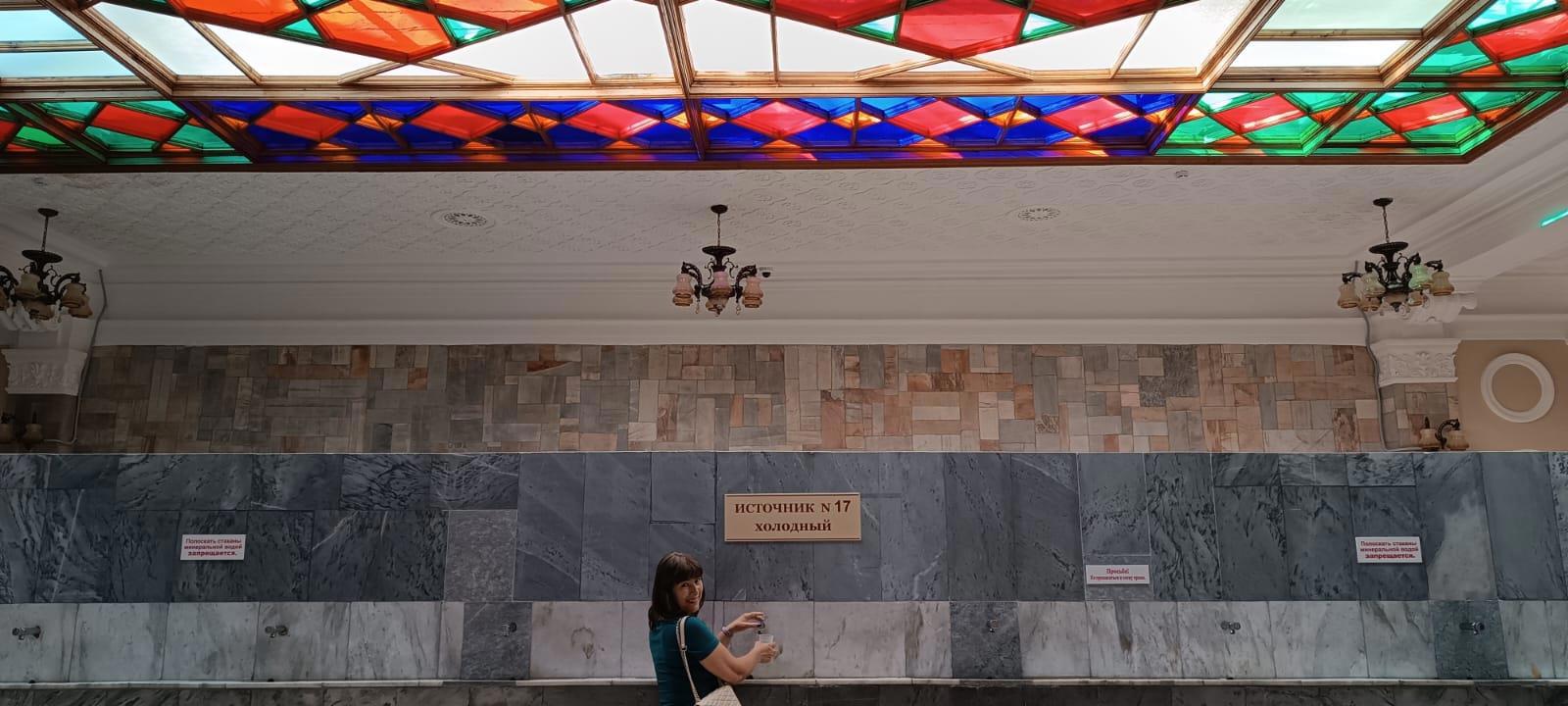Сам бювет очень красивый. Был построен одним из первых в Ессентуках архитектором Уптоном. Именно он спроектировал Елизаветинскую галерею в Пятигорске и знаменитую Нарзанную галерею в Кисловодске. В прошлом году в Ессентуках ее долго реставрировали и наконец, она вновь гостеприимно открыла свои двери для страждущих. Источник 17, наравне с "четверкой" тоже пользуется популярностью! И не смотрите, что на фотографии я одна. У нас очень воспитанная публика. И если вы фотографируетесь, то все будут терпеливо ждать.
