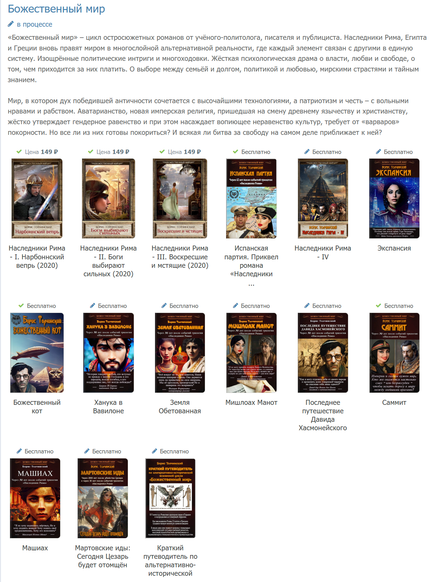 В 2021 году я встречался в Москве с коллегой-историком, доцентом ВШЭ, читателем «Наследников Рима». Он высоко оценил эти книги, но когда я обмолвился, что ещё и автор книг под псевдонимом Брайан Толуэлл, и рекомендовал их, то в ответ услышал: