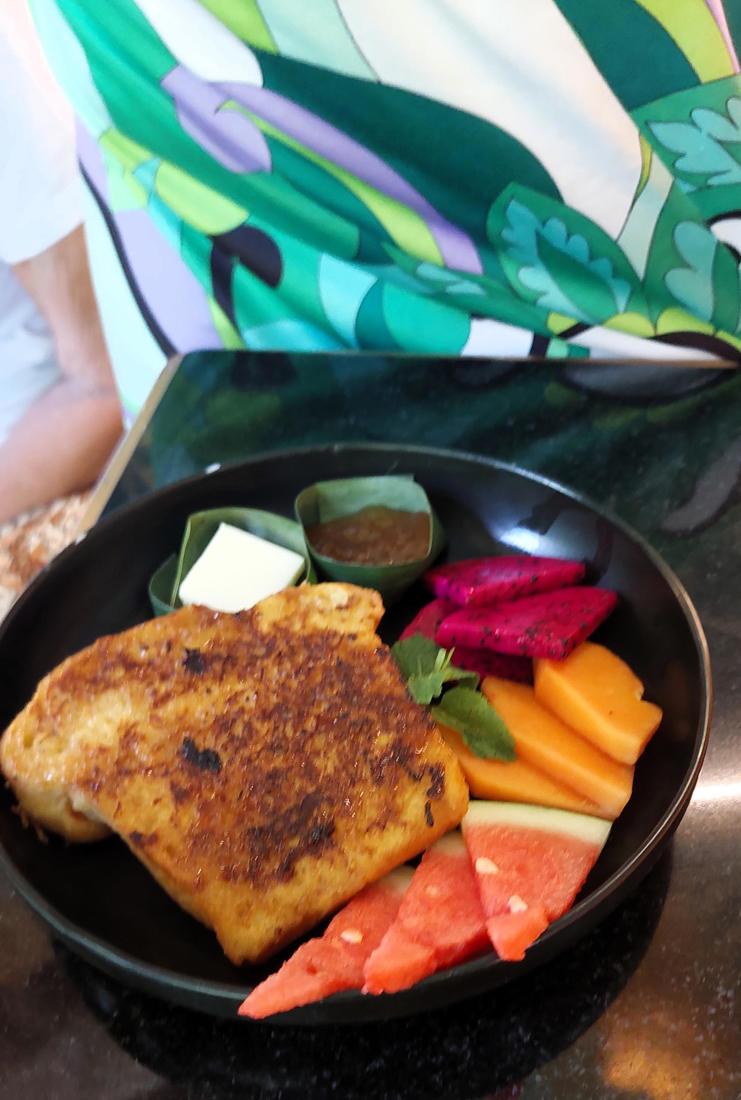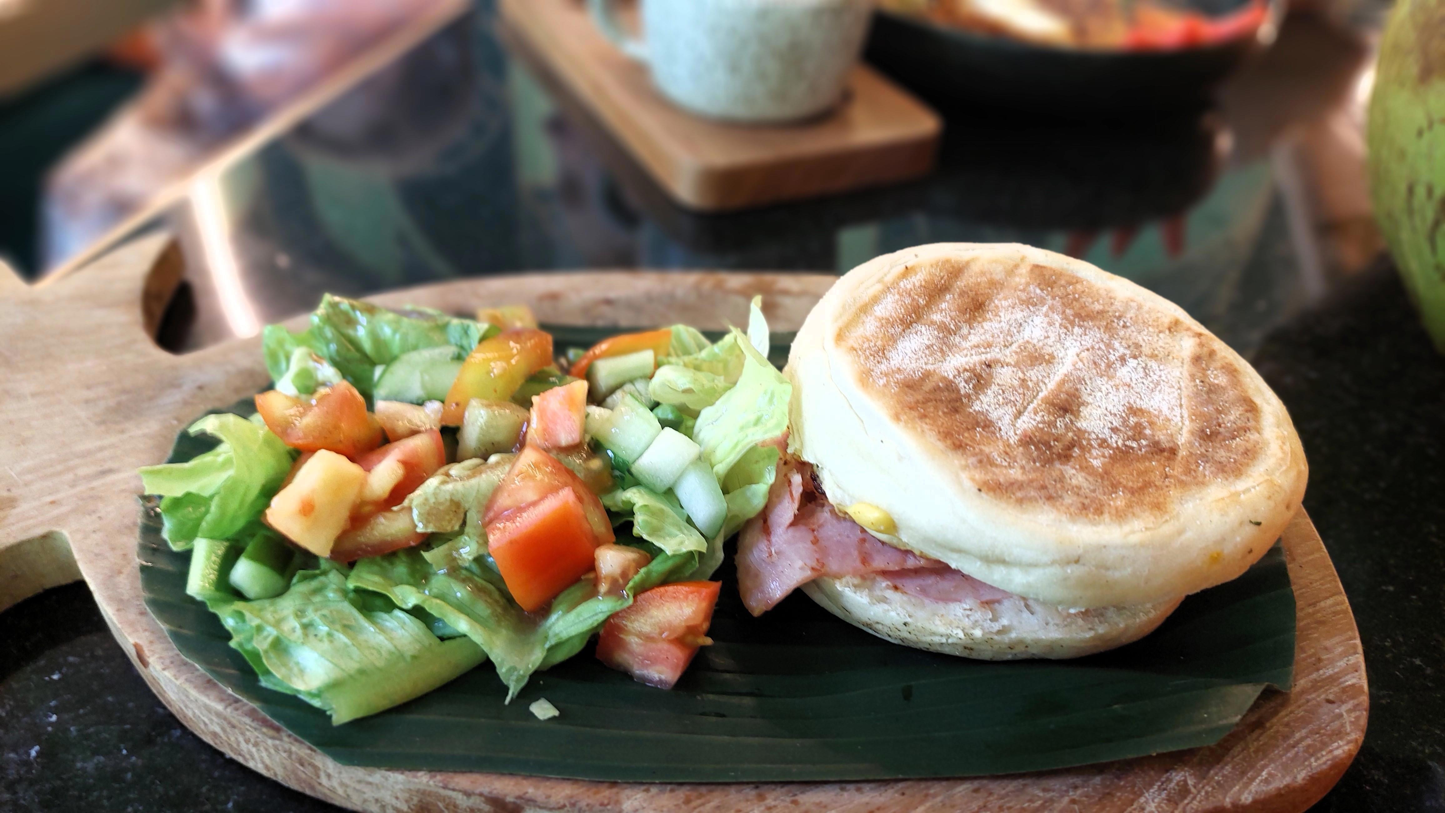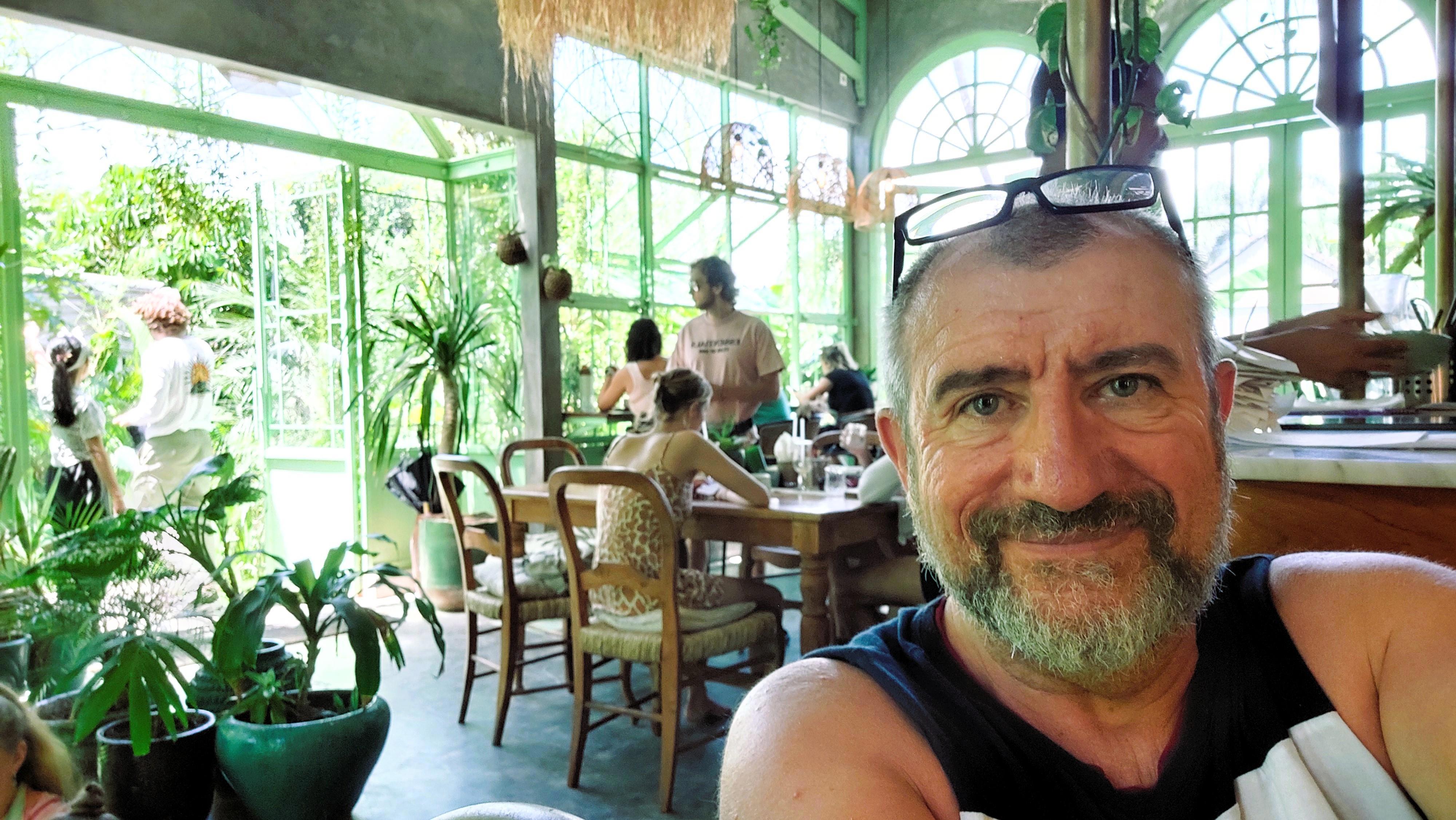 Пришли, обломились, более шустрые семейные отдыхающие заняли все места. Детвора носилась по узеньким тропинкам, шум, гам. Неожиданно для меня, семейная компания человек на 12 была из Голландии, не хило их занесло. Официант предложил несколько мест за разными столиками, но на одного не хватало. Уря, ну не любитель я кафе, тем более утречком, мне ближе домашний уют и утренний расслабон. Лано, грю, принесёте мне что-нить на вынос, я на виллу, чайку попью.