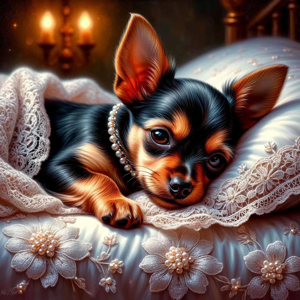 Шедеврум упорно рисует кого угодно, только не той-терьера, однако я его почти победила, только лохматость вышла повышенная. Но зима же и сказка, так что будем считать, что пёсик у нашей принцессы вот примерно такой. Заглядывайте почитать, у нас мило, уютно и весело