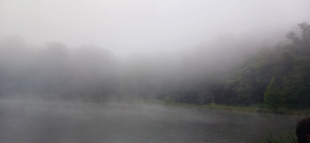 А на обратном пути горы накрыл туман. Хотя, скорее, поднимаясь по серпантину за Дилижаном, мы просто въехали в облако. Видимость была по оптимистическим оценкам метров 10, и ни противотуманники, ни дальний свет не помогали от слова "совсем".