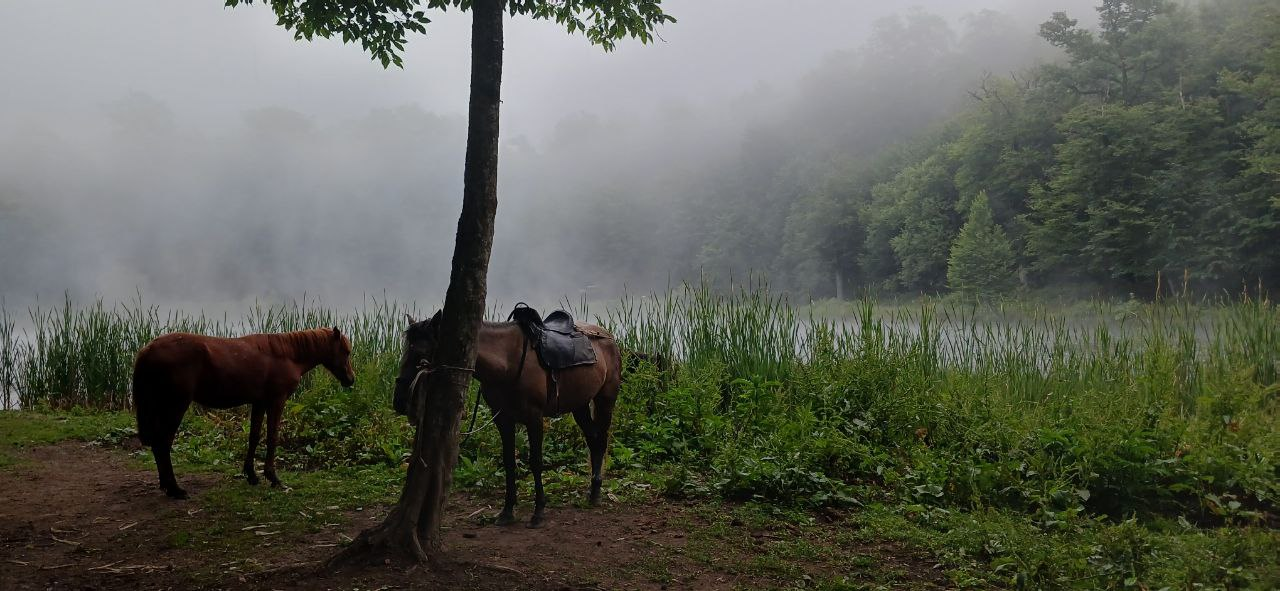 Оно расположено в паре километров от деревни Гош, но ехать к нему своим ходом никому не посоветую. Увидев на деревенской улице тюнингованные джимы с рекламой оной природной достопримечательности, я сразу понял в чём дело. Так что мы переехали вброд маленькую горную речку и припарковали машину на склоне за деревней, рядом с ещё несколькими машинами жаждущих лицезреть озеро.